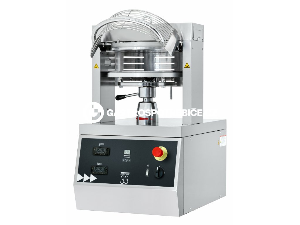 Pizza PRESSA je ideální stroj pro rychlé formování pizza těsta jeho stlačením pomocí vyhřívaných disků. Usnadňuje a zrychluje přípravu velkého množství pizza těsta. Je tak zachována vysoká účinnost lisu s permanentní kvalitou bez nutnosti kvalifikované pracovní síly. Lisy PRESSA umožňují zpracovávat pizza těsto do Ø33 cm (PRESSA 33), do Ø45 cm (model PRESSA 45), nebo do Ø50 cm (model PRESSA 50). Speciálně tvarované vyhřívané disky (potažené teflonem) při sevření vytvářejí tradiční lem na okraji pizzy. Snadná změna tloušťky těsta a nastavení teploty elektronickým termostatem či času stlačení.Doplňkové parametry