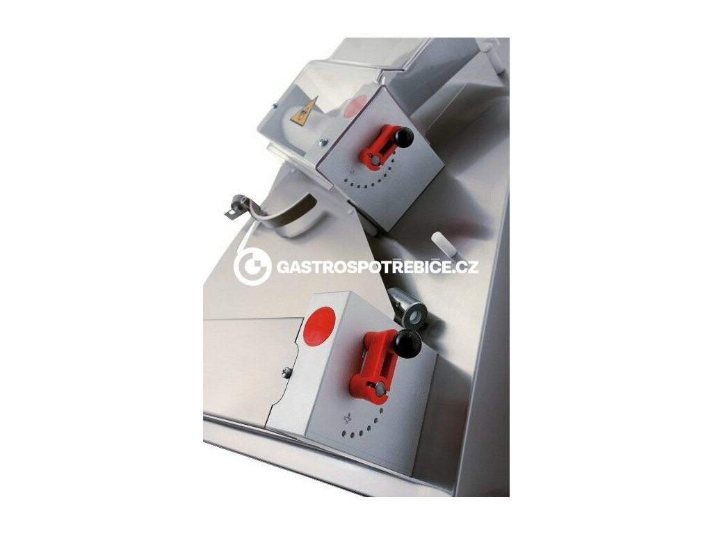 Model je komplet v robustním celonerezovém provedení, 2 páry polohovatelných plastových válců uložených šikmo nad sebou a tvarovací závaží. na objednávku možnost osadit ovládacím pedálem Pizza: 260 - 430 mm Velikost porce: 210 - 700 gDoplňkové parametry