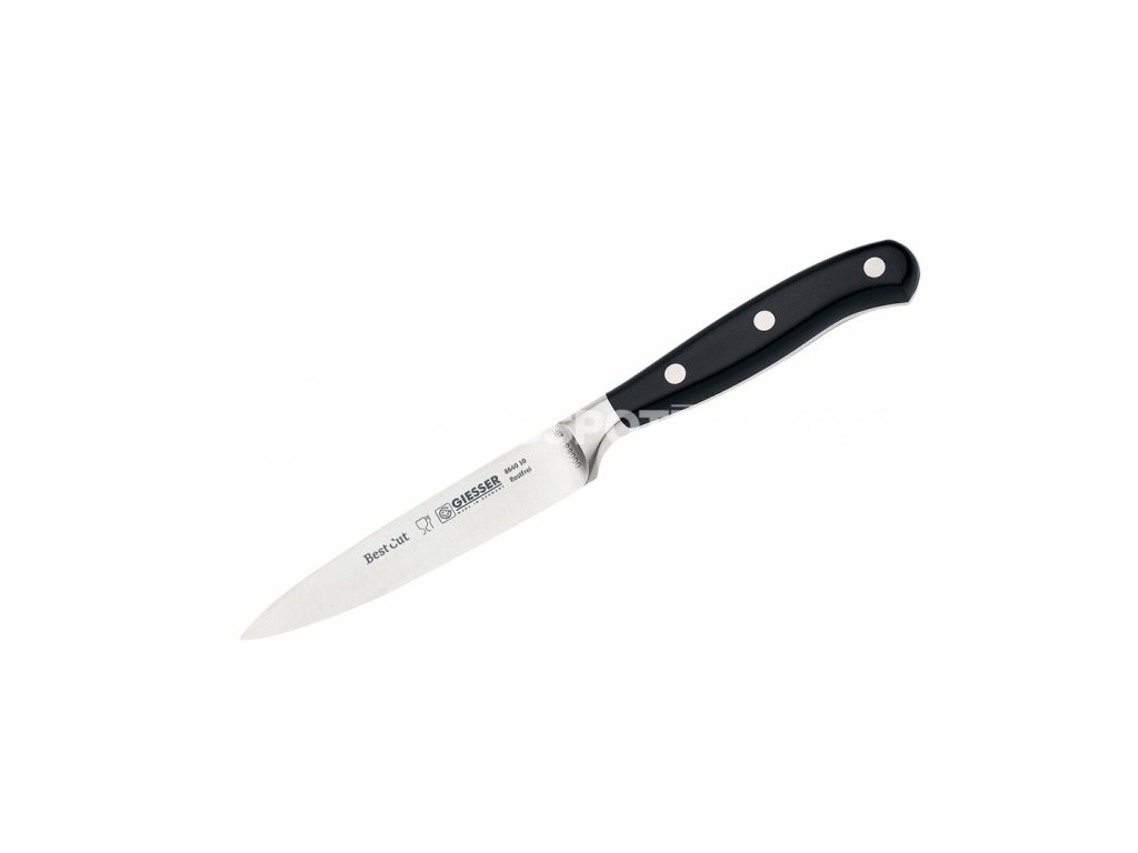 Délka ostří: 100 mm Na loupání ovoce a zeleniny. ČEPEL nože vyrobena z jednoho kusu kované oceli. Obzvláště vysoký obsah uhlíku 0,55-0,59 % pro zajištění výjimečně dlouhé životnosti ostří a mimořádné ostrosti. ERGONOMICKÝ TVAR rukojeti s lehkým zaoblením hran. Perfektní přilnavost pro zajištění přesného vedení. Z plastu speciálně vyvinutého pro styk s potravinou. Pevně přidělána třemi nýty. Každý nůž ze série BestCut má přiděleno UNIKÁTNÍ ČÍSLO a nedochází tak k záměně nožu mezi kuchaři. Materiál: nerez X55 / plast Délka čepele: 10 cm Typ: kovanýDoplňkové parametry