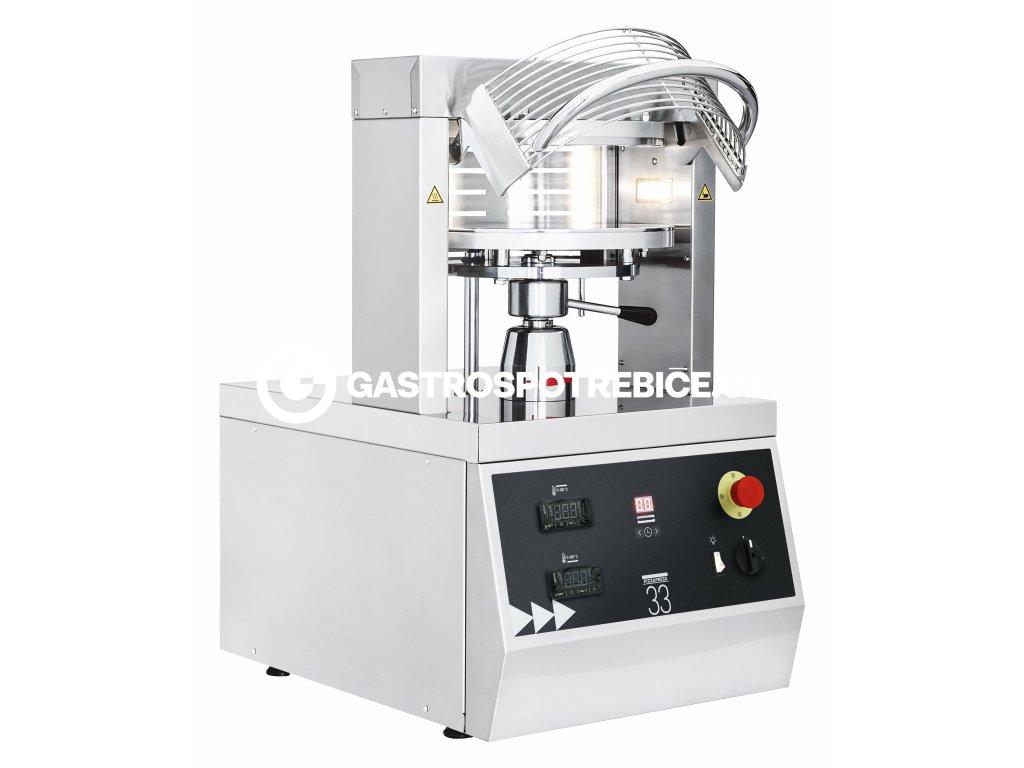 Pizza PRESSA je ideální stroj pro rychlé formování pizza těsta jeho stlačením pomocí vyhřívaných disků. Usnadňuje a zrychluje přípravu velkého množství pizza těsta. Je tak zachována vysoká účinnost lisu s permanentní kvalitou bez nutnosti kvalifikované pracovní síly. Lisy PRESSA umožňují zpracovávat pizza těsto do Ø33 cm (PRESSA 33), nebo do Ø45 cm (model PRESSA 45). Speciálně tvarované vyhřívané disky (potažené teflonem) při sevření vytvářejí tradiční lem na okraji pizzy. Snadná změna tloušťky těsta a nastavení teploty elektronickým termostatem či času stlačení.Doplňkové parametry