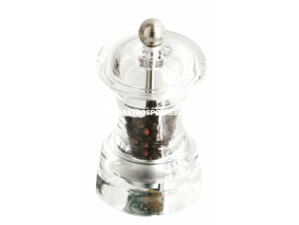 Stolní mlýnek od firmy Lidrewa na pepř s ocelovými kameny v elexantním plexi provedení, výška mlýnku je 10 cm.