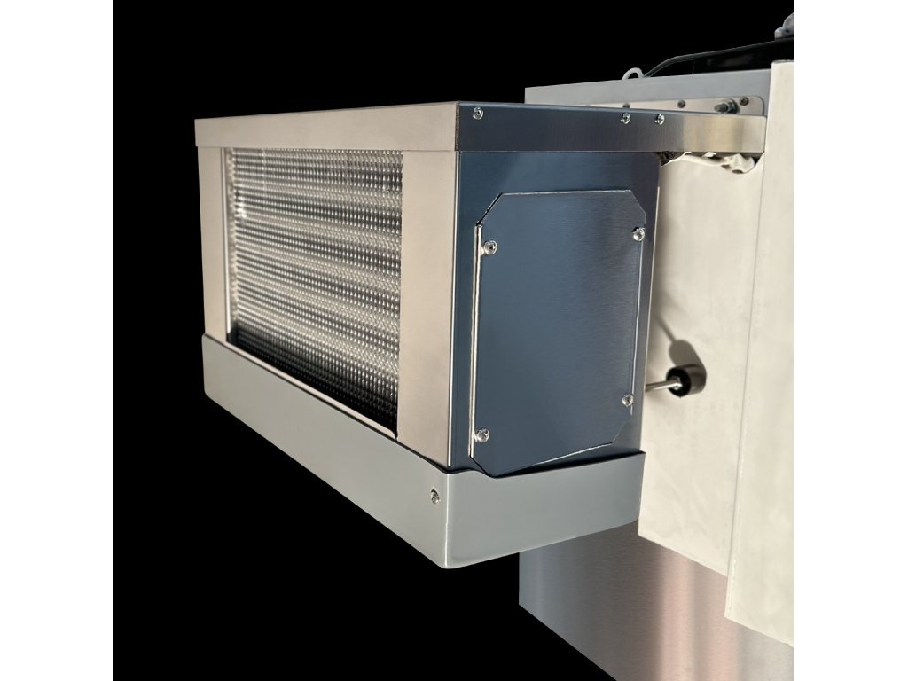 Mrazicí bloková jednotka ke stavebnicovému boxu -10 až -20 °C. Součástí jednotky je rohový panel, a proto ji lze instalovat pouze do levého rohu vedle dveří boxu. monobloková mrazicí jednotka|automatické odpařování kondenzátu|okolní teplota až +43 °C a 65% vlhkost vzduchu|digitální termostat a teplotní displej|nerezová povrchová úpravaDoplňkové parametry