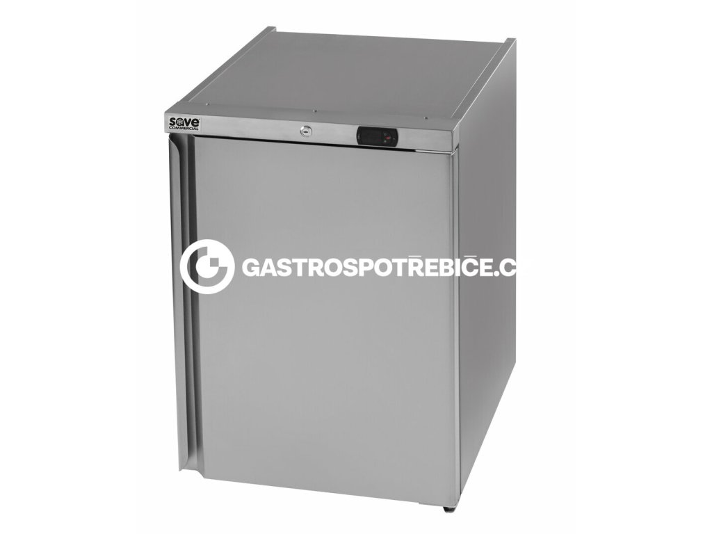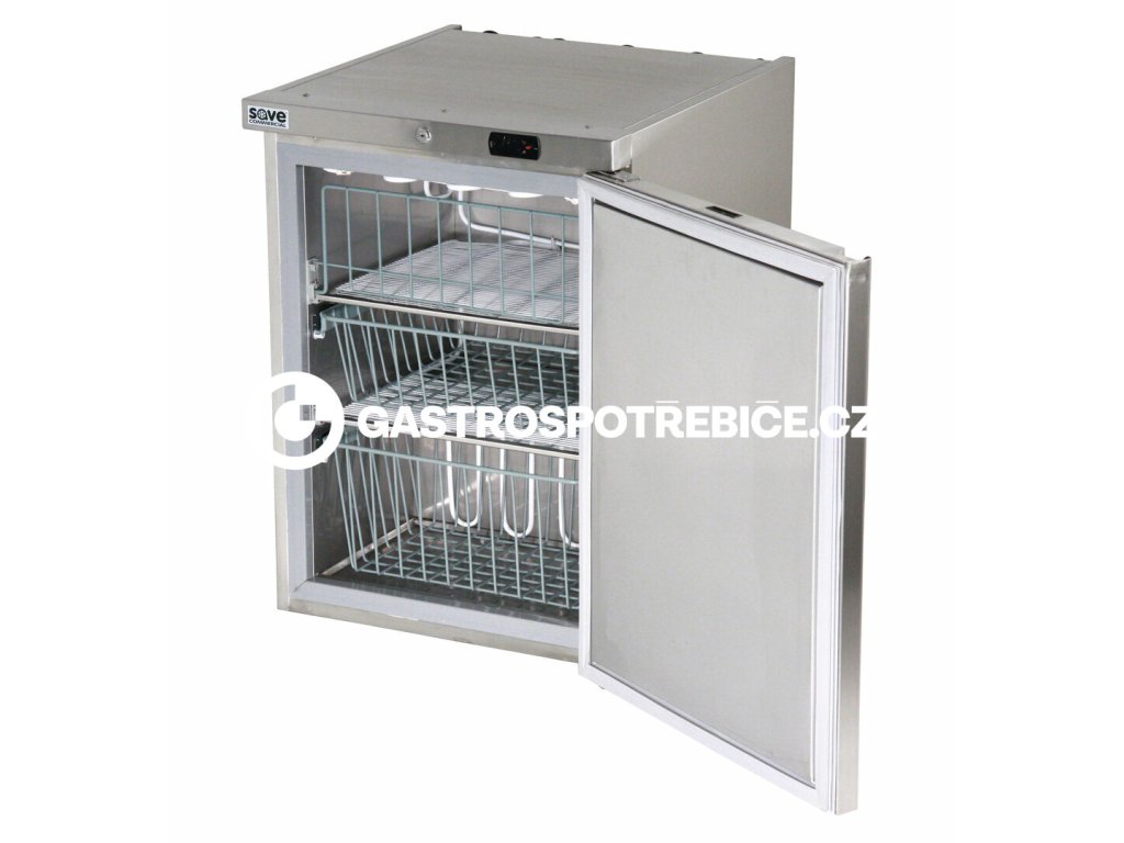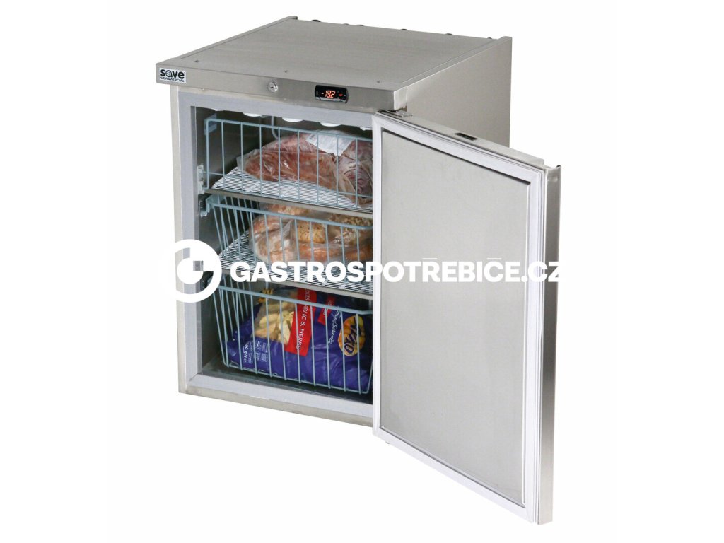 Celonerezová podpultová mrazící skříň s intenzivním ventilovaným chlazením. Chladící prostor řízení elektronickým termostatem s automatickým odtáváním a přehledným LDC displejem (dle HACCP - zobrazení aktuální teploty) nerezový hygienický vnitřní prostor je vybaven 2 ks pevných mrazících roštových polic se 2 kovovými koši. Výškově stavitelné nožičky. V základu jsou skříně vybaveny zámkem dveří. Objem: 121 l Materiál : celonerezová Typ chlazení: statickéDoplňkové parametry