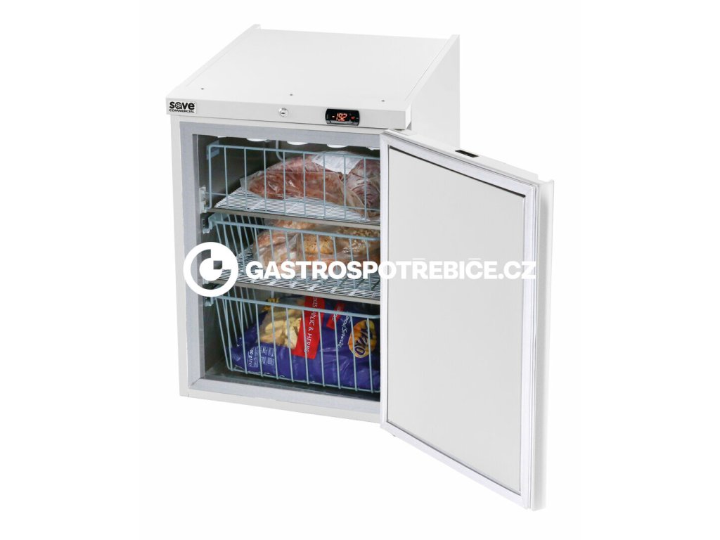 Podpultová mrazící skříň v bílém laku se statickým chlazením. Chladící prostor řízení elektronickým termostatem s automatickým odtáváním a přehledným LDC displejem (dle HACCP - zobrazení aktuální teploty) nerezový hygienický vnitřní prostor je vybaven 2 ks pevných mrazících roštových polic se 2 kovovými koši. Výškově stavitelné nožičky. V základu jsou skříně vybaveny zámkem dveří. Objem: 121 l Provedení : bílý lak Typ chlazení: statickéDoplňkové parametry