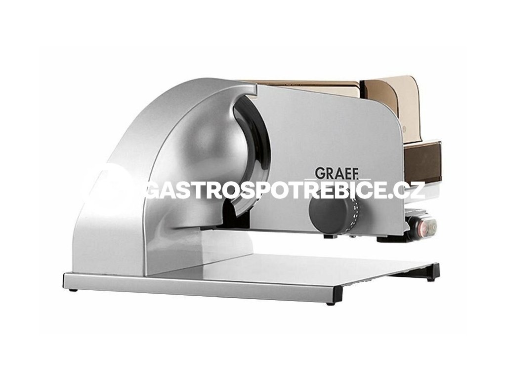 Potřebujete nakrájet či naporcovat uzeniny, salámy nebo sýry? S manuálním nářezovým strojem BI 1920 DE od německé firmy Graef to není žádný problém. Požadovanou sílu řezu si můžete libovolně a snadno nastavit od 0 do 15 mm. O řez se postará hladký nůž o průměru 190 mm se speciální CERA3 nepřilnavou keramickou povrchovou úpravou, bezpečnostního krytu a opěrné desky s prolisy. Pohon a provedení Přímý pohon nože zajišťuje kvalitní motor se šnekovým převodem (tichý převod s velkým točivým momentem) s napájením 230 V a příkonem 185 W. Odlehčený hliníkový vozík s polohovatelnou přítlačkou je uložen vodorovně. Bezpečnostní kryty a přítlačka zajistí bezpečné a snadné posouvání a dokrajování surovin. Nářezový stroj je vyroben z hliníkové slitiny s odolnou a hygienickou eloxovanou povrchovou úpravou. Jednoduchá konstrukce umožňuje dobrý přístup, snadnou údržbu a každodenní čištění. Zařízení je svojí konstrukcí určeno pro lehčí gastronomické provozy a domácnosti. Součástí stroje je zařízení na broušení nože, Šnekový druh pohonu a vodorovné uložení řezného stolu