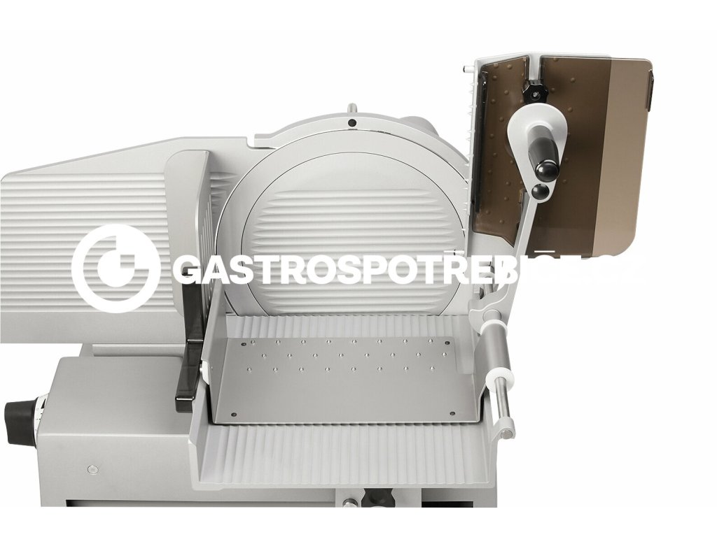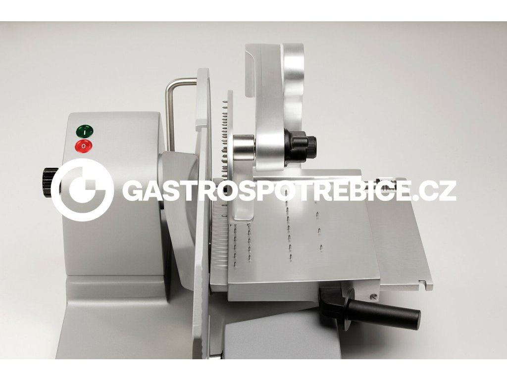 Profesionální nářezové stroje Graef linie MASTER CERA3 DS v hliníkovém provedení se speciálním keramickým nepřilnavým povrchem CERA3 (kompletní opláštění včetně vozíku a nože). Všechny komponenty lze snadno demontovat bez nutnosti použití speciálního nářadí. Pohon stroje je zajišťován šnekovým převodem s výkonným bezúdržbovým vzduchem chlazeným motorem. Ke stroji je dodáváno speciální výkonné brusné zařízení. Přesné nastavení síly řezu a uchycení produktu na vozík s odlehčeným pojezdem pro velice snadné krájení. Bezpečné voděodolné ovládání s piezzoelektrickými odolnými spínači. Podstava stroje je vybavena protiskluzovou gumou zamezující nechtěnému pohybu stroje a usazování nečistot pod zařízení. Model MASTER 3310 DS - dvojité sáně pro krájení masa a roládových výrobků. velkoplošný pojezdný stůl umožní vložit vnitřní přiváděcí desku s hroty, která umožňuje snadné krájení čerstvého masa a roládových výrobků. Vnitřní přiváděcí deska je opatřena kuličkovým ložisken umožňujicím velmi lehký posun. Lze ji snadno vyjmout pro krájení standartních výrobků a pro čištění. Součástí stroje je zařízení na broušení nože Šnekový druh pohonu Vodorovné uložení řezného stolu Možné objednat model s napájením 400 VDoplňkové parametry