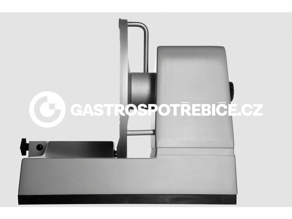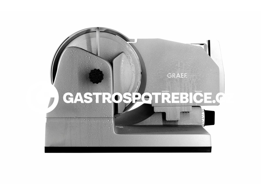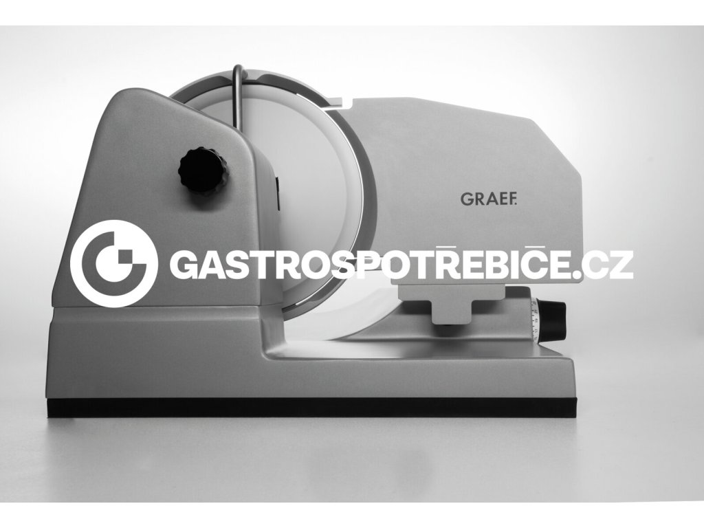 Profesionální nářezové stroje Graef linie MASTER CERA3 v hliníkovém provedení se speciálním keramickým nepřilnavým povrchem CERA3 (kompletní opláštění včetně vozíku a nože). Všechny komponenty lze snadno demontovat bez nutnosti použití speciálního nářadí. Pohon stroje je zajišťován šnekovým převodem s výkonným bezúdržbovým vzduchem chlazeným motorem. Ke stroji je dodáváno speciální výkonné brusné zařízení. Přesné nastavení síly řezu a uchycení produktu na vozíku s odlehčeným pojezdem pro velice snadné krájení. Bezpečné voděodolné piezzo ovládání s odolnými spínači. Podstava stroje je vybavena protiskluzovou gumou zamezující nechtěnému pohybu stroje a usazování nečistot pod zařízení. Součástí stroje je zařízení na broušení nože Šnekový druh pohonu Vodorovné uložení řezného stolu Možné objednat model s napájením 400 VDoplňkové parametry