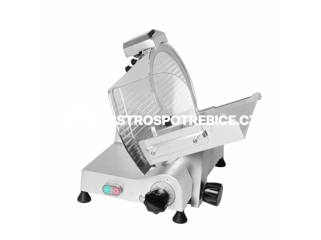 Potřebujete nakrájet uzeniny a salámy na opravdu tenké plátky? S manuálním nářezovým strojem NS 300 ES to není problém. Požadovanou sílu řezu si můžete libovolně a snadno nastavit od 0 do 14 mm. O řez se postará hladký nerezový nůž o průměru 300 mm s bezpečnostním krytem a prolisy snižující tření krájené suroviny a namáhání stroje. Pohon a údržba Pohon nože zajišťuje kvalitní motor s řemenovým převodem s napájením 230 V a příkonem 160 W. Šikmo uložený vozík vám bez větší námahy usnadní krájení uzenin. Vozík je navíc vybaven bezpečnostním krytem a přítlačkou pro bezpečné a snadné posouvání a dokrajování uzeniny. Nářezový stroj je vyroben z hliníkové slitiny s odolnou a hygienickou eloxovanou povrchovou úpravou. Jednoduchá konstrukce a lehce demontovatelné díly umožňují snadnou údržbu a každodenní čištění. Zařízení je svojí konstrukcí určeno pro lehčí gastronomické provozy. Součástí stroje je zařízení na broušení nože Řemenový druh pohonu Šikmé uložení řezného stoluDoplňkové parametry
