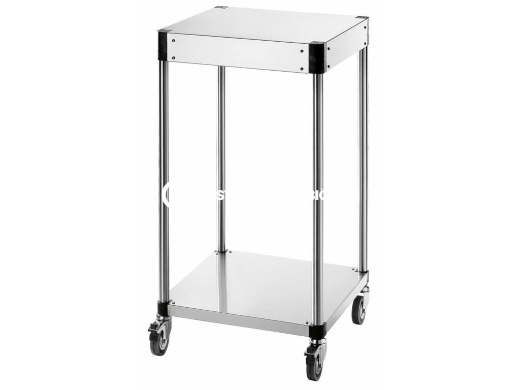 Neutrální otevřený nerezový podstavec pro E-6. Pojízdné provedení se spodní policí pro odkládání příslušenství nebo např. GN.Doplňkové parametry