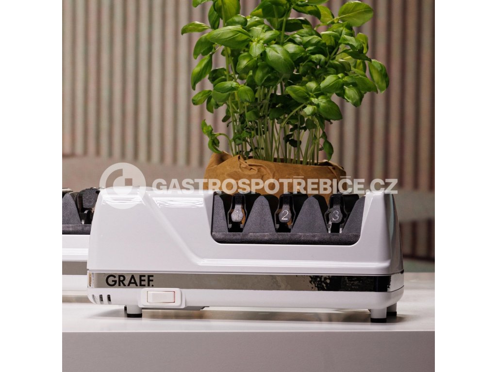 Elektrický ostřič nožů s diamantovým prachem vhodný pro hladké, vlnité, domácí i profesionální nože. Tři stupně broušení zaručují dokonalou ostrost a pomalé tupění nože. Graef: Řeznictví, gastronomie i domácnost Rodinná firma Graef vyrábí manuální i automatické nářezové stroje s označením „Made in Germany“. Kromě kráječů firma dodává také páková espresa, mlýnky na kávu, rychlovarné konvice, toastery a vaflovače. Společnost konstruuje kvalitní výrobky už více než 50 let. Dodává profesionální kráječe vyvinuté pro řeznictví a gastronomické provozy, poloautomatické i automatické kráčeje pro živnostníky a širokou škálu prvotřídních kráječů pro domácnost. Firma při výrobě svých produktů využívá nejkvalitnější materiál a klade ty nejvyšší nároky na využitelnost, bezpečnost a vzhled svých produktů.Buďte první, kdo napíše příspěvek k této položce.