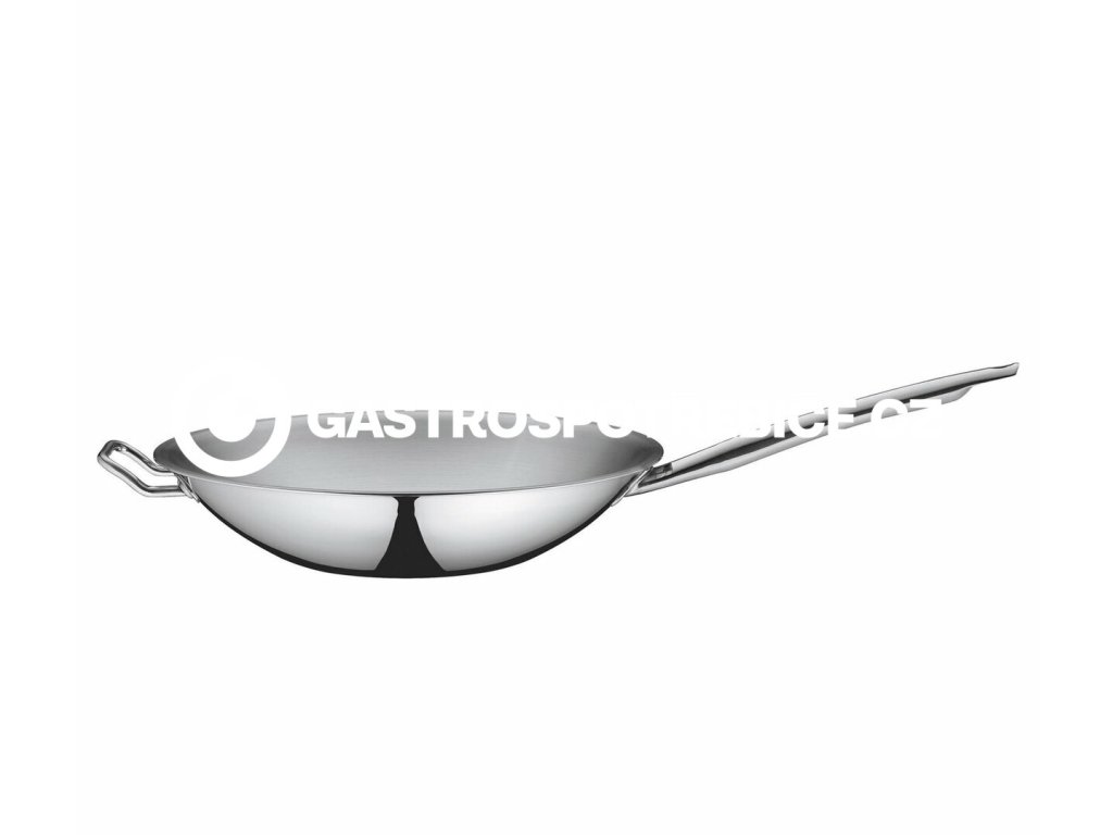 Pánev WOK nabízíme ve dvou provedeních, s kulatým a s plochým dnem, obě o průměru 350 mm a objemu 4 l. Pánev je vyrobena z ušlechtilé oceli (18/0- 18% Chrom) a vnitřní povrch je nerezový (18/10- 18% Chrom, 10% Nikl). Je tedy velmi odolná a slibuje dlouhou výdrž i v tvrdých podmínkách velkých kuchyní. Dlouhá ergonomická rukojeť se skvěle drží a slibuje tak pohodlnou přípravu asijských pokrmů, smažené rýže, nudlí, úpravu zeleniny a masa. Pánev s plochým dnem má ještě navíc ucho pro lepší manipulaci. Ucho se nerozpálí ani v případě delšího vaření a krásně padne do ruky. Rozvádění tepla: Pět vrstev materiálu, kombinace ušlechtilé oceli a hliníkového jádra, umožňuje rovnoměrné a rychlé vedení tepla až po samý okraj nádoby. Ideální pro ekonomické vaření s úsporou času i energie. Dokonale padnoucí poklička: Díky perfektnímu provedení poklička na hrnec skvěle přiléhá a teplo tak zůstane tam, kde má. Vaření a ohřívání se zásadně zrychlí a zefektivní a potraviny si zachovají svou barvu a tolik důležité vitamíny. Ucha a držadla: Vyrobena z ušlechtilé oceli. Nerozpálí se ani v případě delšího vaření a krásně padnou do ruky a zajišťují bezpečnou a efektivní manipulaci. Okraj hrnce: Uzavřený a jednolitý. Tento způsob provedení zabraňuje korozi materiálu a významně prodlužuje životnost výrobku. Důmyslně upravený okraj je vhodný pro jednoduché vylévání z hrnce. Díky pečlivému zpracování si skvěle rozumí s pokličkou a společně zabraňují úniku tepla.
