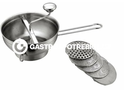 Profesionální celonerezová pasírka jejiž součástí je 5 disků s rozdílnými otvory.