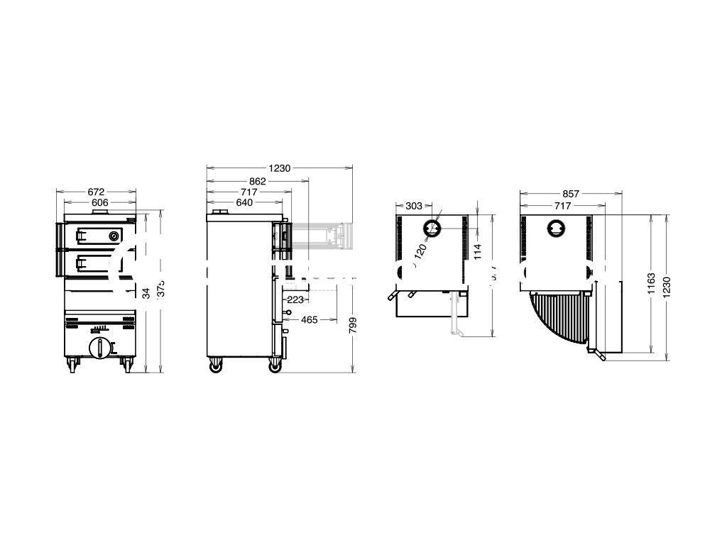 Pece jsou svojí konstrukcí určeny pro spalování buď dřeva, nebo dřevěného uhlí, slouží jako gril/pec, a můžete v nich vařit nebo grilovat v uzavřené komoře. Spalovací komora z ušlechtilé oceli a litiny, s povrchovou úpravou z nerezové oceli, zaručuje robustnost, dlouhou životnost a vysokou hygienu. Ideální pro grilování, gratinování, regeneraci, zakouření a pražení. Topeniště je navrženo tak, aby pojalo 5 kg dřevěného uhlí, 7 kg palivového dříví. Vzduch pro spalování je regulovatelný a umožňuje tak použití různých druhů paliva: dřevo, uhlíkový koks a lisované cihly. Topeniště lze posunovat až do výšky 20 cm a je tak zajištěna dodávka tepla během poslední části výroby. Další možnost nastavení při vaření je prostřednictvím regulátoru tahu v horní části zařízení. Inovativní otevírání komor grilu. Dveřní závěsy nejsou přímo v kontaktu s vysokou teplotou a spalinami v komoře (s výjimkou jejich opravy). Zařízení PRO "plus" je vybaveno jednou pečicí komorou se šamotovou deskou (horní komora) rozšiřující možnosti přípravy pokrmů a umožňující pečení a tepelnou přípravu pokrmů přímo na šamotové desce (např.pizza). Komora je ve smaltovaném provedení se žárovzdorným povrchem pro optimální distribuci tepla. Pec je vybavena výstupem páry (odvlhčením) přes komínek. Dveře pece se otevírají pomocí tepelně odolné ergonomické rukojetí a jsou vybaveny bezpečnostní a hermetickou západkou. Jak rukojeť, tak dveře zaručují, že pec je utěsněna proti nežádoucí infiltraci kyslíku, zvyšuje se tak výkon a tepelná účinnost pece. * možnost umístění do interiéru s dostatečně účinnou digestoří (umístění musí splňovat požadavky platných norem a požárních předpisů)Doplňkové parametry