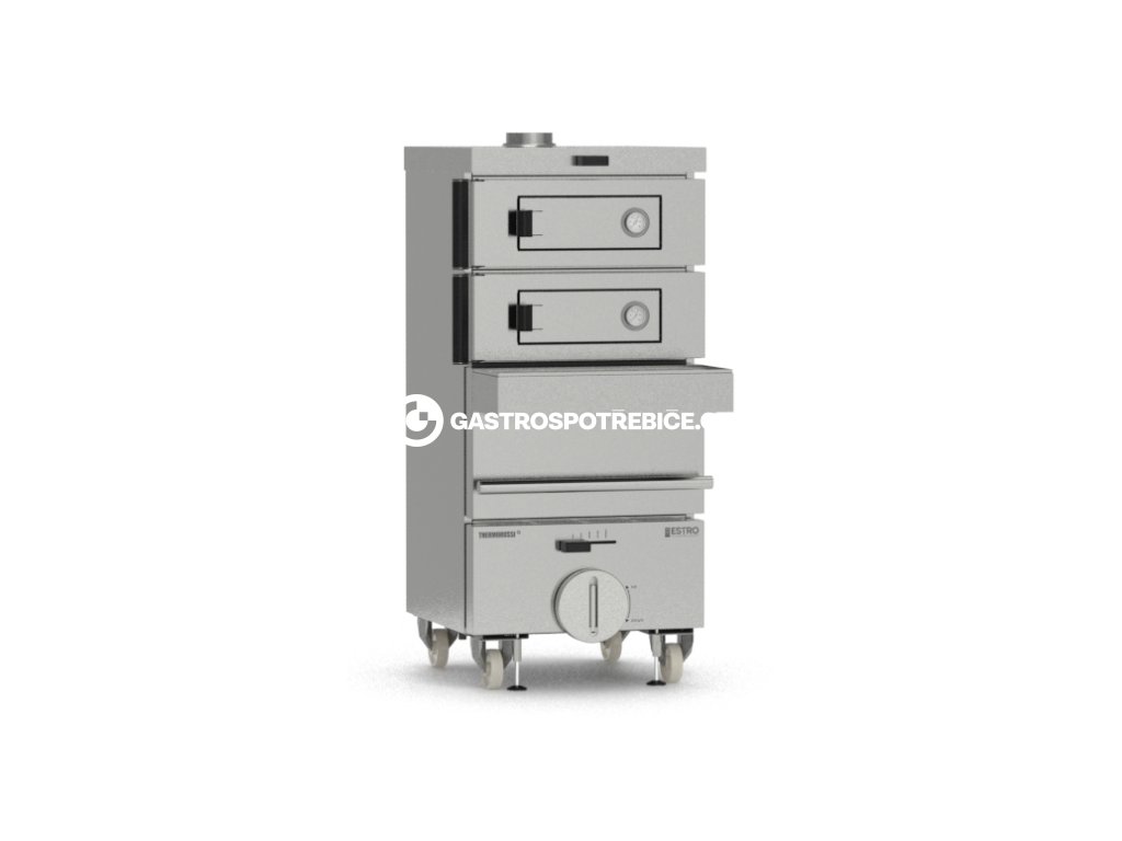 Pece jsou svojí konstrukcí určeny pro spalování buď dřeva, nebo dřevěného uhlí, slouží jako gril/pec, a můžete v nich vařit nebo grilovat v uzavřené komoře. Spalovací komora z ušlechtilé oceli a litiny, s povrchovou úpravou z nerezové oceli, zaručuje robustnost, dlouhou životnost a vysokou hygienu. Ideální pro grilování, gratinování, regeneraci, zakouření a pražení. Topeniště je navrženo tak, aby pojalo 5 kg dřevěného uhlí, 7 kg palivového dříví. Vzduch pro spalování je regulovatelný a umožňuje tak použití různých druhů paliva: dřevo, uhlíkový koks a lisované cihly. Topeniště lze posunovat až do výšky 20 cm a je tak zajištěna dodávka tepla během poslední části výroby. Další možnost nastavení při vaření je prostřednictvím regulátoru tahu v horní části zařízení. Inovativní otevírání komor grilu. Dveřní závěsy nejsou přímo v kontaktu s vysokou teplotou a spalinami v komoře (s výjimkou jejich opravy). Každá komora je vybavena grilovacím roštem z nerezové slitiny s keramickým nepřilnavým povrchem, snadno odnímatelný a lze jej mýt v myčce. Komory jsou otevírány pomocí ergonomických teplovzdorných rukojetí a jsou vybaveny bezpečnostní a hermetickou západkou. Dále jsou komory vybaveny ohnivzdornou zadní částí, která zabraňuje úniku výparů a tepla na pracoviště. Dveře s rukojetí zabraňují infiltraci kyslíkem, zlepšují výkon a tepelnou účinnost. Otevřením kontrolních dvířek je možné sledovat vařené potraviny. Teplota v komorách je zobrazena analogovými teploměry. Teploměry jsou obklopeny průhledným sklem, aby bylo možné monitorovat náhodný přírůstek plamene. Zařízení je svojí konstrukcí úsporné na místo. Ochrana proti korozi a kolečka pro usnadnění manipulace. * možnost umístění do interiéru s dostatečně účinnou digestoří (umístění musí splňovat požadavky platných norem a požárních předpisů)Doplňkové parametry
