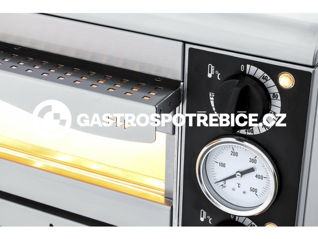Hideo je ideální pro bary a restaurace, které vyžadují pokročilý produkt, s moderní estetikou, snadno ovladatelný a schopný zaručit rychlé a přesné vaření, aniž by zabíral příliš mnoho místa v pracovním prostředí. Vysoce výkonná trouba Hideo vyrobená z nejlepších komponent nabízí velké uspokojení počínaje svým inovativním, kompaktním a velmi elegantním designem. Trouba má vynikající vybavení: dvojitý termostat, žáruvzdorná kamenná deska, standardní teploměr, velké okno. Inovativní a kompaktní design: více prostoru v pracovním prostředí Korpus a přední část trouby jsou vyrobeny z vysoce kvalitní nerezové oceli pro zajištění maximální odolnosti a dlouhé životnostiDoplňkové parametry