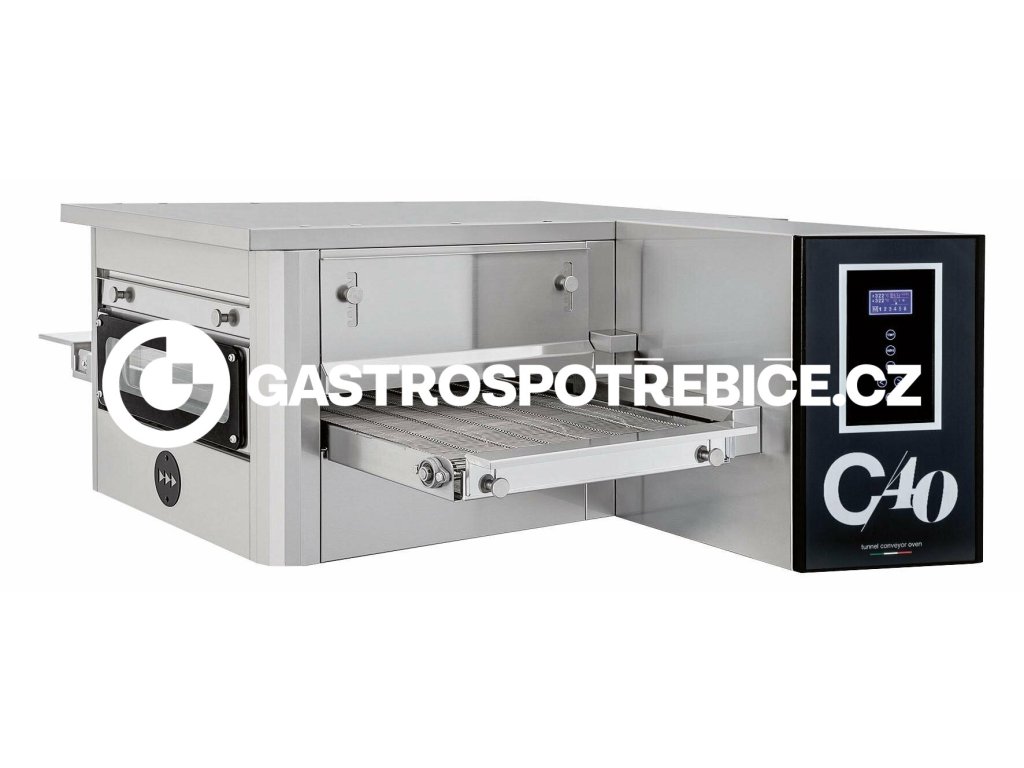 Multifunkční průchozí elektrické horkovzdušné pizza pece TUNNEL jsou v celonerezovém provedení, mají izolované stěny a komoru (povrchová teplota pouze do 40°C), kterou prochází nerezový dopravníkový pás, na kterém je výrobek rovnoměrně pečen bez nutnosti neustálé kontroly personálem. Snadné elektronické ovládání s displejem a možností nastavení času zapnutí/vypnutí, rychlosti posuvu pásu a nastavení teploty horních a spodních těles. Úspora až 30% energie oproti tradičním „statickým” pizza pecím. Pece je možno využít kromě pečení pizzy, také pro pečení chleba, plochých těst, pizza tyčinek „grissini”, ale i pro přípravu zeleniny a mnoho dalších gastronomických specialit. Prosklené dveře umožňují kontrolované pečení a snadný přístup pro čištění komory. Pece jsou stohovatelné (možnost umístit až 3 komory na sebe) = 1 prostor / 3x větší kapacita. Model C/40 je dodáván bez podstvce (cena podstavce viz.originální příšlušenství PRISMAFOOD) Firma Prismafood je předním evropským výrobcem technologie pro pizzerie. Všechna zařízení jsou vyráběna v továrnách ve Valvasone, provincie Pordenone v Itálii (THINK QUALITY MADE IN ITALY). Vášeň, kompetence a neustálé vzdělávání zaměstnanců, spolu s rozsáhlými zkušenostmi z řízení, umožnily rychlý rozvoj firmy. Společnost Prismafood srl vlastní celý výrobní proces čímž může garantovat svým zákazníkům permanentní kvalitu a rychlou reakci na jakýkoli požadavek, technickou podporu či dodávku originálních náhradních dílů. Prostřednictvím zastoupení v ČR je zajištěn trvalý sklad náhradních dílů a technologická podpora všem produktům.Doplňkové parametry