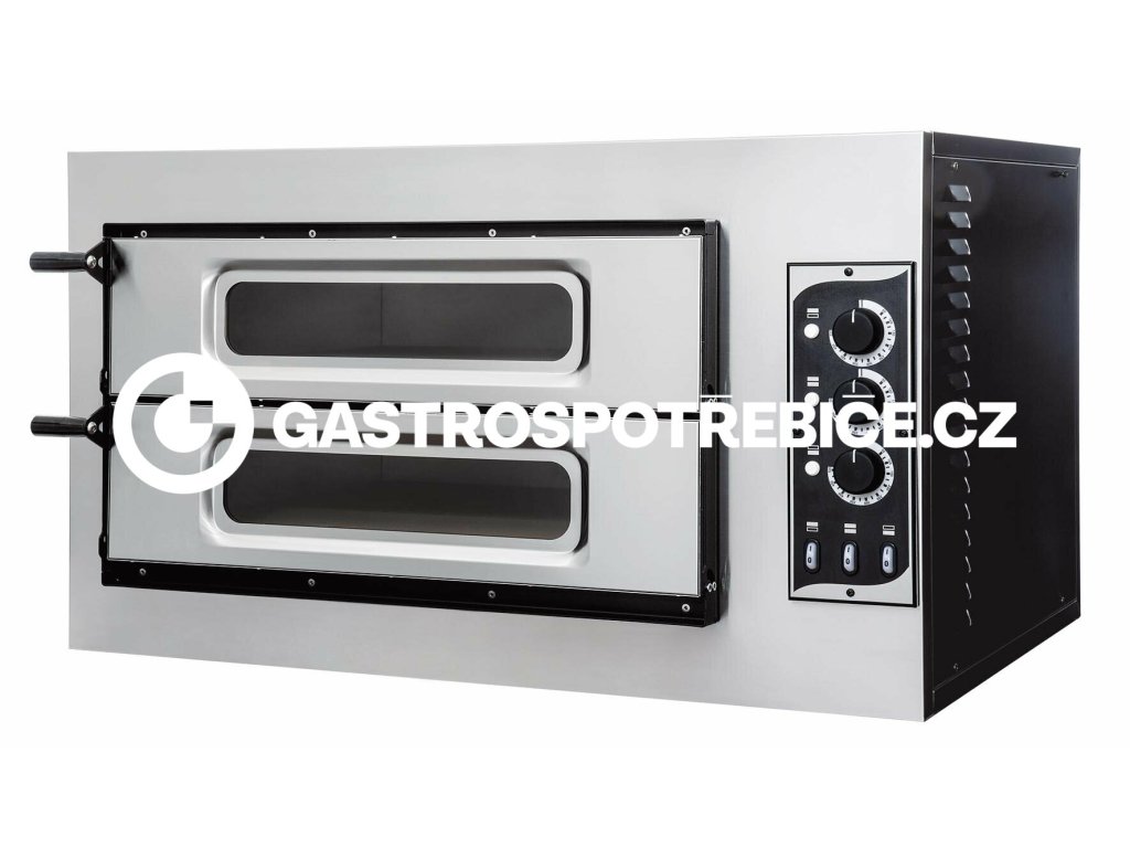 Výkonná dvoukomorová pizza pec BASIC 2/50 VETRO, dvě rozměrné komory 2x 620x500mm se šamotovým dnem umožňují snadno připravovat i pizzu Ø 45cm, nebo využít plechy 600x400mm. Model je ovládaný 3 mechanickými termostaty pro tři výkonná tělesa (horní, středové a spodní). Nerezové provedení čela a dveří s kvalitním odizolováním. Provedení VETRO s prosklenými dvířky a osvětlením komory nabízí maximální přehled o pečení v komoře. Firma Prismafood je předním evropským výrobcem technologie pro pizzerie. Všechna zařízení jsou vyráběna v továrnách ve Valvasone, provincie Pordenone v Itálii. Vášeň, kompetence a neustálé vzdělávání zaměstnanců, spolu s rozsáhlými zkušenostmi z řízení, umožnily rychlý rozvoj firmy. Společnost Prismafood srl vlastní celý výrobní proces čímž může garantovat svým zákazníkům permanentní kvalitu a rychlou reakci na jakýkoli požadavek, technickou podporu či dodávku originálních náhradních dílů. Prostřednictvím zastoupení v ČR je zajištěn trvalý sklad náhradních dílů a technologická podpora všem produktům. Ovládání: mechanické Kapacita: 1+1ks (max.Ø 45cm) Komora: 620x500mmDoplňkové parametry