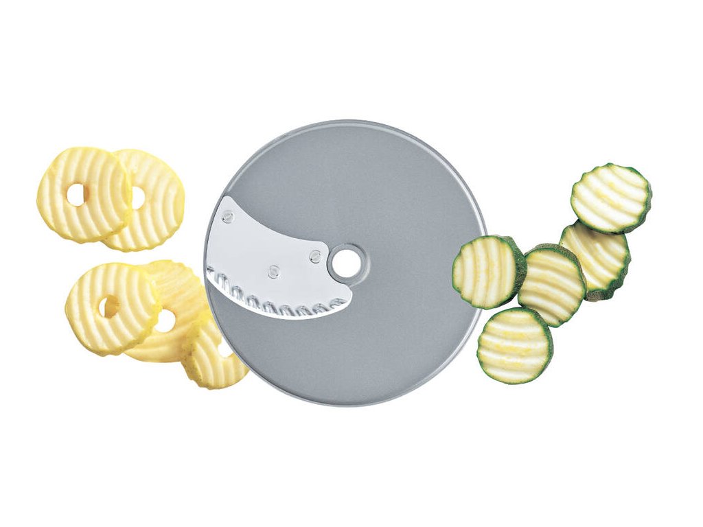 Plátkovač vroubkovaný 5 mm s povrchovou úpravou Mineral + vysoká odolnost zachování čerstvosti optimální ochrana povrchu disku snižuje tření disku snadné čištění (lze mýt v myčce nádobí, ale pozor na ztupení břitů)