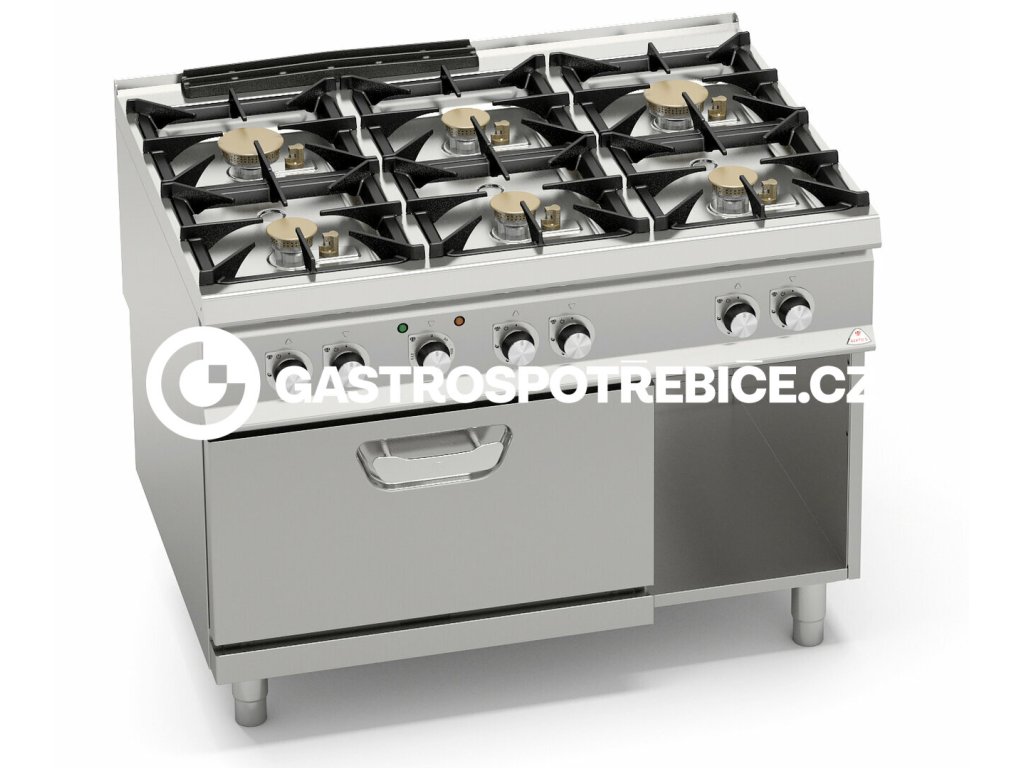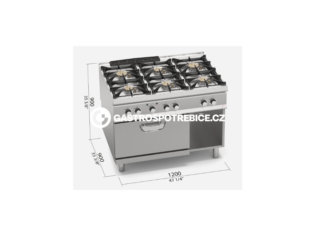 Nové výkonné sporáky linie HIGH POWER vyrobeny z odolné nerez oceli AISI 304. Profesionální poniklované litinové hořáky s vnitřním a vnějším hořením, snadno demontovatelné umístěny v prolisované nerezové vaně vybavené výpustí. Možnost napuštění vody kolem hořáků (snadné a rychlé čištění vypuštěním znečištěné vody). Hořáky s bezpečnostním termočlánkem, zapalovány věčným plamínkem. Kompaktní provedení s elektrickou horkovzdušnou troubou GN 2/1. 6 x 7 kW (+ 6kW) 6 hořáky 210 kgDoplňkové parametry