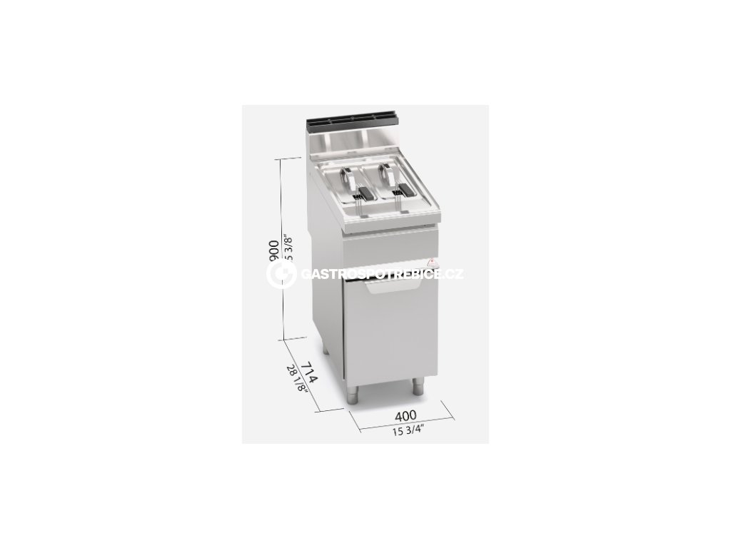 Ovládání teploty termostatickým ventilem od 110°C do 190°C s přesným zjišťováním teploty díky senzorům ve vaně. Bezpečnostní termostat s manuálním restartem. Vypouštění kulovým kohoutem s tepelně odolným držadlem. Kompaktní provedení s uzavřeným podstavcem. Elektrické a plynové fritézy jsou vybaveny mechanickým ovládáním s přesným řízením teploty. Technologie přímého ohřevu s vysokou účinností hořáků a topných spirál zaručuje velmi rychlé nahřátí a rozvod tepla velkým povrchem zabraňujícím přepalování oleje. Nádrž se zaoblenými hranami a úchytem pro zavěšení koše poskytuje provozovateli maximum hygieny a pohodlí spojeného s bezpečím při práci. Výklopná elektrická topná tělesa umožňují snadnou údržbu a čistění vany. Provedení: plyn Objem vany: 11 l Celkový příkon: 11 kWDoplňkové parametry