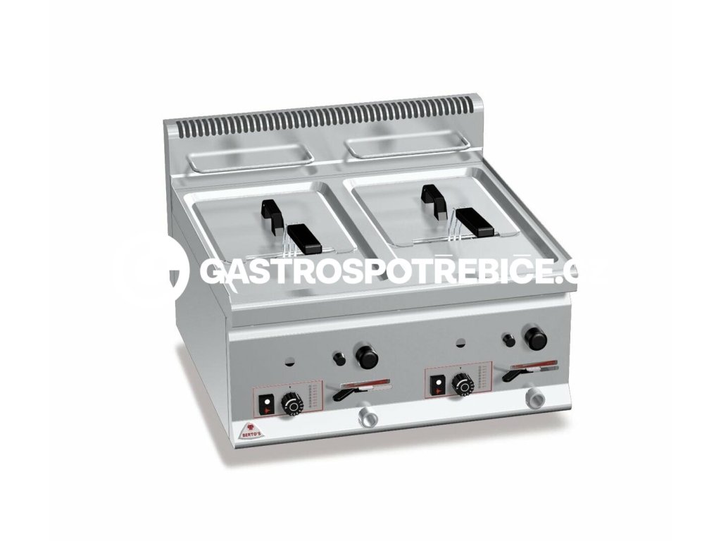 Ovládání teploty termostatickým ventilem od 110°C do 190°C s přesným zjišťováním teploty díky senzorům ve vaně. Bezpečnostní termostat s manuálním restartem. Vypouštění kulovým kohoutem s tepelně odolným držadlem. Elektrické a plynové fritézy jsou vybaveny mechanickým ovládáním s přesným řízením teploty. Technologie přímého ohřevu s vysokou účinností hořáků a topných spirál zaručuje velmi rychlé nahřátí a rozvod tepla velkým povrchem zabraňujícím přepalování oleje. Nádrž se zaoblenými hranami a úchytem pro zavěšení koše poskytuje provozovateli maximum hygieny a pohodlí spojeného s bezpečím při práci. Výklopná elektrická topná tělesa umožňují snadnou údržbu a čistění vany. Provedení: plyn Objem vany: 2x 8 l Celkový příkon: 13,2 kWDoplňkové parametry