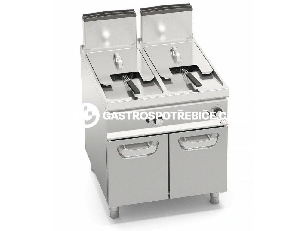 Dvoupláštové provedení vany s nepřímým způsobem ohřevu. Ovládání teploty termostatickým ventilem od 110-190°C s přesným zjišťováním teploty díky senzorům ve vaně, elektrické zapalování. Elektromechanické ovládání s nestavením teploty 0°C do 190°C. Bezpečnostní termostat s manuálním restartem. Vypouštění kulovým kohoutem s tepelně odolným držadlem. Ve standardu vybavena dvěma koši. Pracovní plocha z nerez oceli AISI 304 tloušťka 20/10, přední a boční panely z nerezové oceli AISI 304. Nerezový oválný voštinový hořák zajišťuje rovnoměrný ohřev velké plochy přes výměník tepla umístěný přímo ve vaně. Chráněný zápalný plamínek s pojistným ventilem. Piezoelektrické zapalování s gumovou ochranou. Vana nerez ocel AISI 304 se zaoblenými hranami, studená zóna pod hořákem pro slévání zbytků. Na vrchu se zaoblenou hranou pro zavěšení koše při skapávání oleje. Hmotnost: 98 kg Příkon: 28 kW Obsah: 36 l Počet košů: 4 Počet van: 2Doplňkové parametry