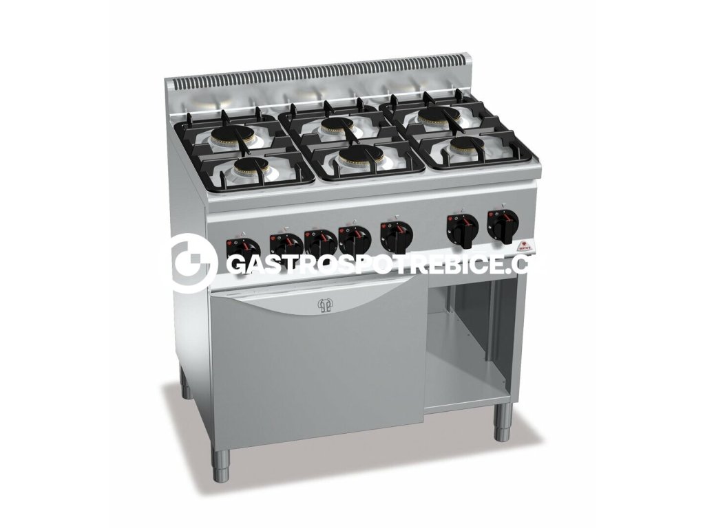 Příprava jídel přímo na plameni je u všech kuchařů nezbytná pro zdůraznění tradičních kulinářských dovedností. Široký výběr modelů, robustní provedení a litinové hořáky 3,5 kW, 6 kW a nově 9kW zaručující nadstandardní výkon a životnost. Nerezové provedení pracovní plochy AISI 304. Plynové nebo elektrické konvekční trouby s vnitřním prostorem pro GN 1/1. Pracovní plocha a opláštění z nerez oceli AISI 304. Litinový hořák s pojistným termostatem. Provedení: plyn Počet hořáků: 6 Trouba: GN1/1 mm Celkový příkon: 32 kWDoplňkové parametry