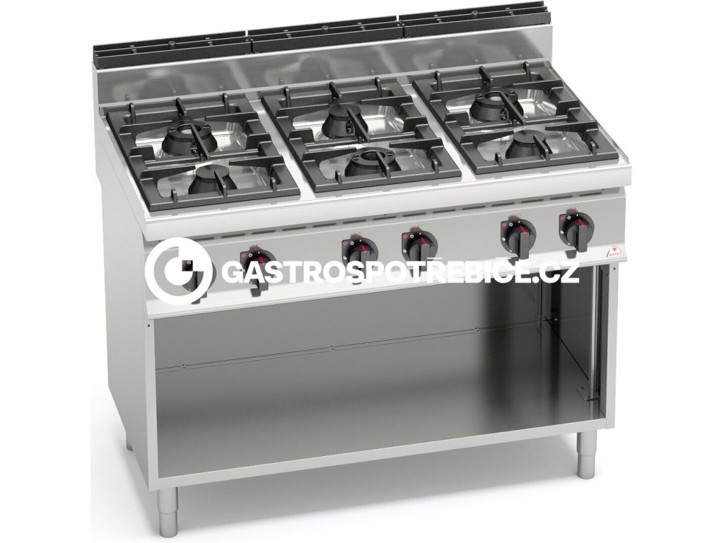 Příprava jídel přímo na plameni je u všech kuchařů nezbytná pro zdůraznění tradičních kulinářských dovedností. Tvar litinových roštů tvoří optimální pracovní plochu pro snadnou manipulaci s nádobím. Silné litinové hořáky 3,5 kW a 7 kW zaručují nadstandardní výkon a životnost. Vysoká energetická účinnost plynových hořáků umožňuje uspořit nejméně 30% plynu ročně v porovnání s tradičními hořáky. Odkapové vaničky pod hořáky mají zaoblené hrany, jsou kompletně odnímatelné. Vše je navrženo tak, aby byla snadná údržba a čištění. Pracovní plocha a opláštění z nerez oceli AISI 304. Výkonné litinové hořáky HIGH POWER, snadno demontovatelné a umístěné ve vyjímatelných prolisovaných smaltovaných (nerezových) odkapových vanách. Zapalování hořáků věčným plamínkem. Kompaktní provedení s otevřeným podstavcem. Výkonné litinové hořáky HIGH POWER (7kW - Ø110 mm a 3,5kW - Ø80mm) snadno demontovatelné a umístěné ve vyjímatelných prolisovaných smaltovaných (nerezových) odkapových vanách. Zapalování hořáků věčným plamínkem. Sporáky jsou vyrobeny z kvalitní nerezové oceli AISI 304 se zaoblenými hranami pro bezpečnou práci a snadnou údržbu. Trouby jsou kompletně vyrobeny z nerez oceli v plynovém, nebo elektrickém provedení: multifunkční trouba FE - statická pro GN 2/1 s ovládáním jednotlivých (4,5 + 3kW), nebo horkovzdušná trouba FE1 - ventilovaná pro GN 1/1. Plynová vařidla v základu dovávána bez dvířek (viz. příslušenství - křídlová dvířka 2P400 a 2P600).Doplňkové parametry