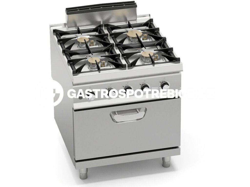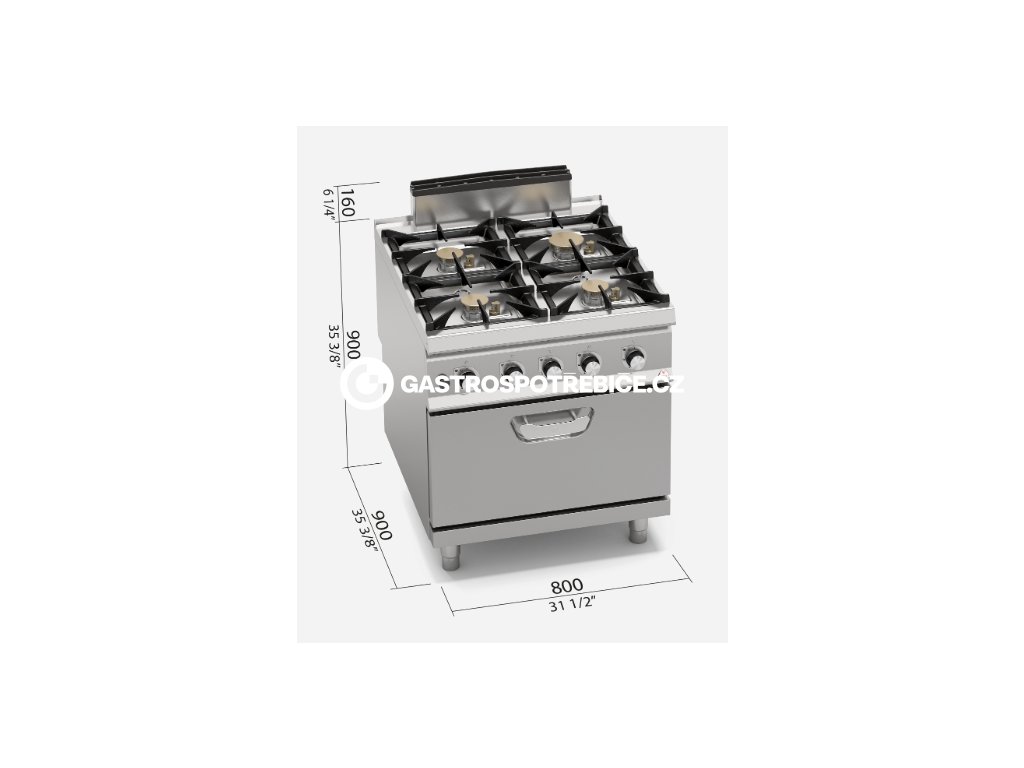 Nové výkonné sporáky linie HIGH POWER vyrobeny z odolné nerez oceli AISI 304. Profesionální poniklované litinové hořáky s vnitřním a vnějším hořením, snadno demontovatelné umístěny v prolisované nerezové vaně vybavené výpustí. Možnost napuštění vody kolem hořáků (snadné a rychlé čištění vypuštěním znečištěné vody). Hořáky s bezpečnostním termočlánkem, zapalovány věčným plamínkem. Kompaktní provedení s výkonnou plynovou troubou GN2/1. 4 x 7+7,8 kW (zápalný plamínek) 4 hořáky 149 kgDoplňkové parametry