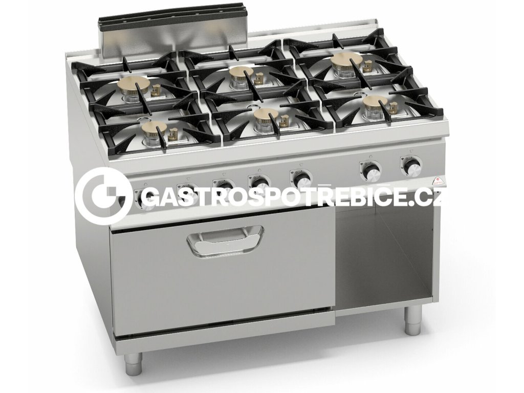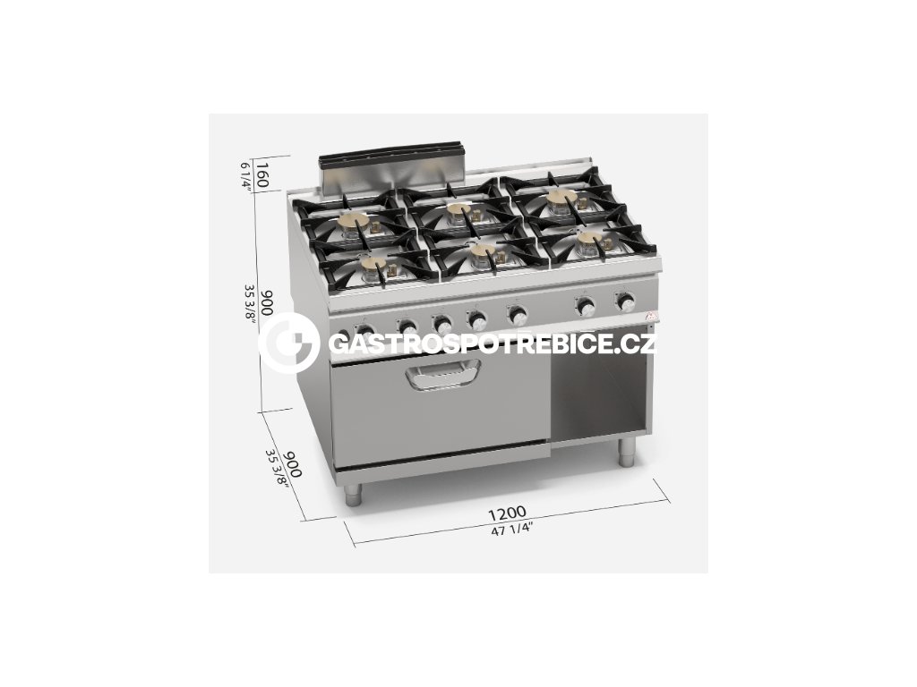Nové výkonné sporáky linie HIGH POWER vyrobeny z odolné nerez oceli AISI 304. Profesionální poniklované litinové hořáky s vnitřním a vnějším hořením, snadno demontovatelné umístěny v prolisované nerezové vaně vybavené výpustí. Možnost napuštění vody kolem hořáků (snadné a rychlé čištění vypuštěním znečištěné vody). Hořáky s bezpečnostním termočlánkem, zapalovány věčným plamínkem. Kompaktní provedení s výkonnou plynovou troubou GN2/1. 6 x 7 kW (+7,8 kW) 6 hořáky 202 kgDoplňkové parametry