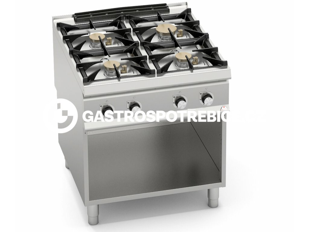 Nové výkonné sporáky linie HIGH POWER vyrobeny z odolné nerez oceli AISI 304. Profesionální poniklované litinové hořáky s vnitřním a vnějším hořením, snadno demontovatelné umístěny v prolisované nerezové vaně vybavené výpustí. Možnost napuštění vody kolem hořáků (snadné a rychlé čištění vypuštěním znečištěné vody). Hořáky s bezpečnostním termočlánkem, zapalovány věčným plamínkem. Kompaktní provedení s otevřeným podstavcem. 4 x 7 kW 4 hořáky 104 kgDoplňkové parametry