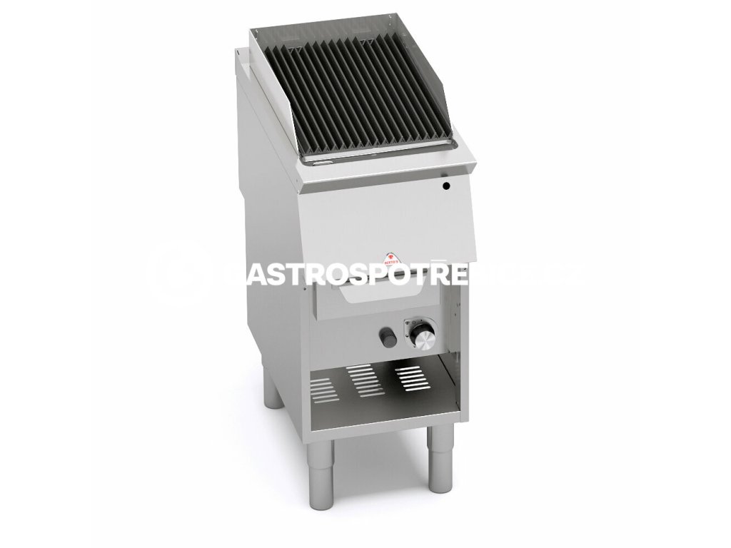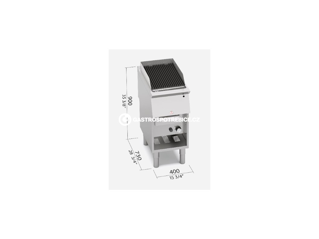 Ohřev plynového vodního grilu je zajištěn dvojitým trubkovým hořákem z nerezové oceli s optimalizovaným spalováním, bezpečnostním ventilem, termočlánek a chráněný zápalný plamínek. Piezoelektrické zapalování s gumovou ochranou. Regulace teploty ventilem s horní a dolní pozicí. Nádrž na vodu pod varnou zónou, vyrobená z nerezové oceli se zaoblenými hranami a výpustným otvorem. Univerzální grilovací litinový rošt s postraními lemy. Pracovní deska z kvalitní nerez oceli AISI 304 tloušťka 2 mm (20/10), přední a boční opláštění z nerezové oceli AISI 304. Objemné zásobníky na vodu a sběr oleje. Velký dělený grilovací prostor se snadno vyjímatelným litinovým roštem (snadná údržba, čištění). Příkon: 9 kW Počet zón: 1 Hmotnost: 45 kgDoplňkové parametry