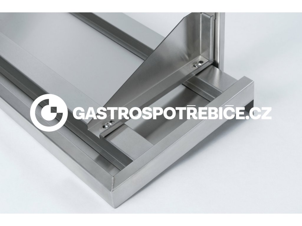 Nerezová konstrukce a police Tloušťka police 4 cm (se zvýšeným zadním dílem 3 cm) Včetně vertikálních tyčí pro upevnění na stěnu - výška 35 cm Police a upevňovací tyče mohou být stohovány a získat tak více úrovníDoplňkové parametry