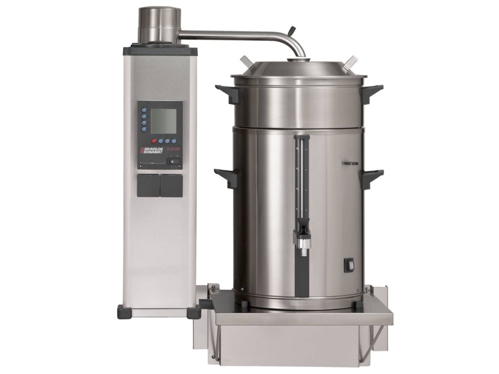Nástěnné překapávací zařízení na kávu a čaj 5 B W L/R 400 V s pevným připojením vody od holandského výrobce BRAVILOR BONAMAT. nástěnné překapávací zařízení na kávu a čaj s pevným připojením vody k použití ve spojení se servírovacím vozíkem s pevným připojením vody nápoj je překapáván do odnímatelných nádob se skleněným vodoznakem bez kohoutu na horkou vodu ploché filtry zásobník může být libovolně umístěn na levé nebo pravé straně překapávač je standardně uzpůsoben pro výrobu kávy, pro výrobu čaje je nutno dokoupit nástavec pro čajový filtr + čajový filtr dle velikosti nádoby Zařízení je vybaveno: indikátorem zavápnění celkovým a denním počítadlem vydaného množství digitálním ovládáním akustickým signálem dokončení překapávání spínacími hodinami Sestava se skládá z: průtokové jednotky vč. kohoutu na horkou vodu 1 zásobníku typu VHG o objemu 5 l filtrační jednotky nástěnné konzole pro průtokovou jednotku Volitelné příslušenství: ploché filtry microfiltr (celonerezový, pro pernamentní použití namísto papírových filtrů) nádoba filtrační nástavec pro filtr čajový filtr čajový výpustný nástavec otočný prodloužený výdejní kohout mixer pro nádobu víka zavírací zásobníky držák nástěnný vozíkDoplňkové parametry