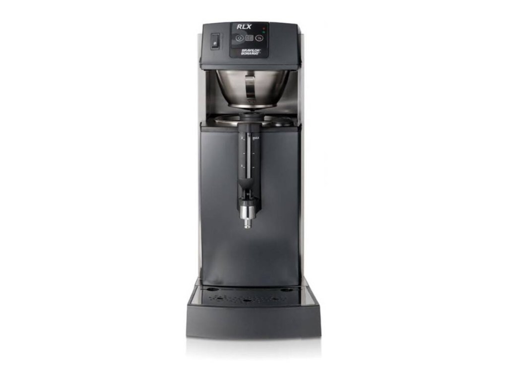Překapávač kávy RLX 5 od holandského výrobce BRAVILOR BONAMAT. stolní překapávací zařízení na kávu a čaj s pevným připojením vody 3/4" káva je překapávána do zabudovaného zásobníku s průhledným vodoznakem robustní vzhled 1 filtrační jednotka 1 zásobník s průhledným vodoznakem o objemu 2 litry 1 nerezový násypník signalizace zavápnění akustický signál po dokončení překapávání odkapávací miska Volitelné příslušenství: filtrační papíry násypník filtrační nerez násypník na čaj nerez odměrka na kávu výpustný nástavec otočný prodloužený výdejní kohout modul na horkou vodu a páruDoplňkové parametry