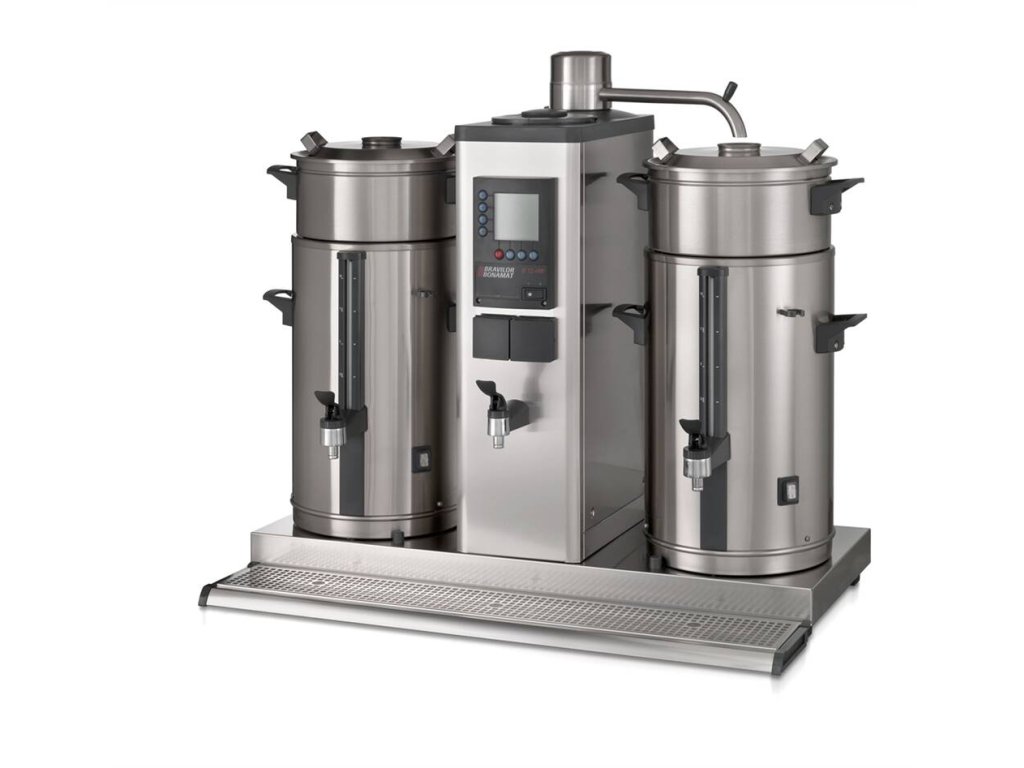 Stolní překapávací zařízení na kávu a čaj B20 HW 400 V s pevným připojením vody od holandského výrobce BRAVILOR BONAMAT. stolní velkokapacitní překapávací zařízení na kávu, čaj a integrované zařízení na přípravu horké vody s pevným připojením vody nápoj je překapáván do odnímatelných nádob se skleněným vodoznakem s kohoutem na horkou vodu ploché filtry zásobník je umístěn vlevo i vpravo překapávač je standardně uzpůsoben pro výrobu kávy, pro výrobu čaje je nutno dokoupit nástavec pro čajový filtr + čajový filtr dle velikosti nádoby Zařízení je vybaveno: indikátorem zavápnění celkovým a denním počítadlem vydaného množství digitálním ovládáním akustickým signálem dokončení překapávání spínacími hodinami Sestava se skládá z: průtokové jednotky s otočným ramenem a integrovaným kohoutem na horkou vodu 2 zásobníků typu VHG o objemu 20 l filtrační jednotky základny odkapávací desky Volitelné příslušenství: ploché filtry microfiltr (celonerezový, pro pernamentní použití namísto papírových filtrů) nádoba filtrační poklice filtrační pánve nástavec pro filtr čajový filtr čajový výpustný nástavec otočný prodloužený výdejní kohout miska odkapní mixer pro nádobu víka zavírací zásobníkyDoplňkové parametry