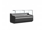 Chladící pultová panoramatická vitrína RT-93L (obslužná/samoobslužná) s ventilovaným chlazením, v elegantním černém provedení určena k prezentaci, uskladnění a prodeji potravin.