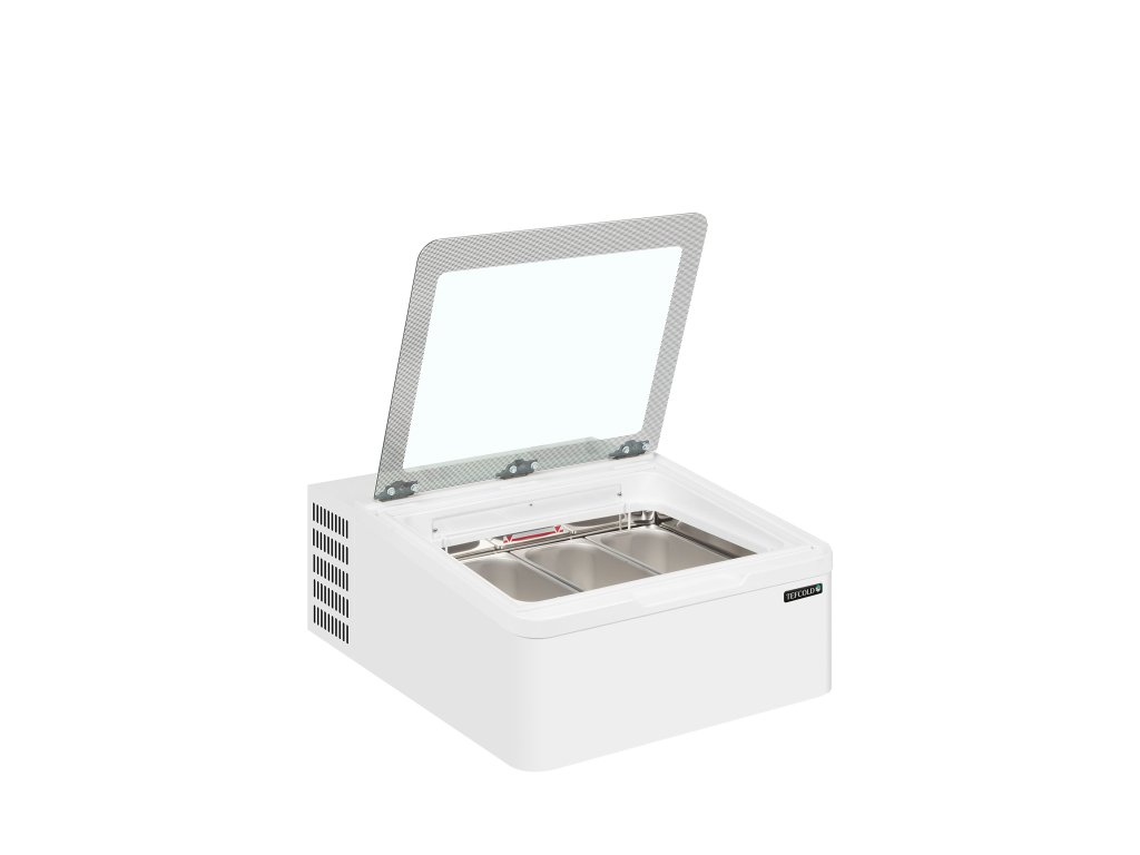 Řada TEFCOLD ICE je ideální pro podniky s omezeným prostorem, které však chtějí maximalizovat prodej kopečkové zmrzliny. Distributor zmrzliny ICE je navržen pro pohodlné umístění na pracovní desku či pult a je k dispozici v konfiguraci se dvěma nebo třemi vaničkami. Lze jej použít jak v přední, tak v zadní části podniku, což umožňuje rychlý a efektivní prodej oblíbených zmrzlin. Na vyžádání je možné objednat také vyvýšený podstavec a zásobník na nanuky. stolní model|náklon výstavní plochy pro lepší prezentaci|vhodné pro 5l vaničky na zmrzlinu (nejsou součástí)|Ideální pro bufety|snadný přístup k produktům|rovné výklopné prosklené víko|statické chlazení|nastavitelné nožky|na objednávku zásobník na nanukyDoplňkové parametry