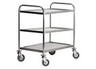 Vozík v nerezovém provedení se 3 policemi, čtyřmi otočnými kolečky (Ø100mm, 2x bržděná). Police s prolisovaným zvednutým okrajem a spodní tlumící vrstvou. Zpevněné rohy se...