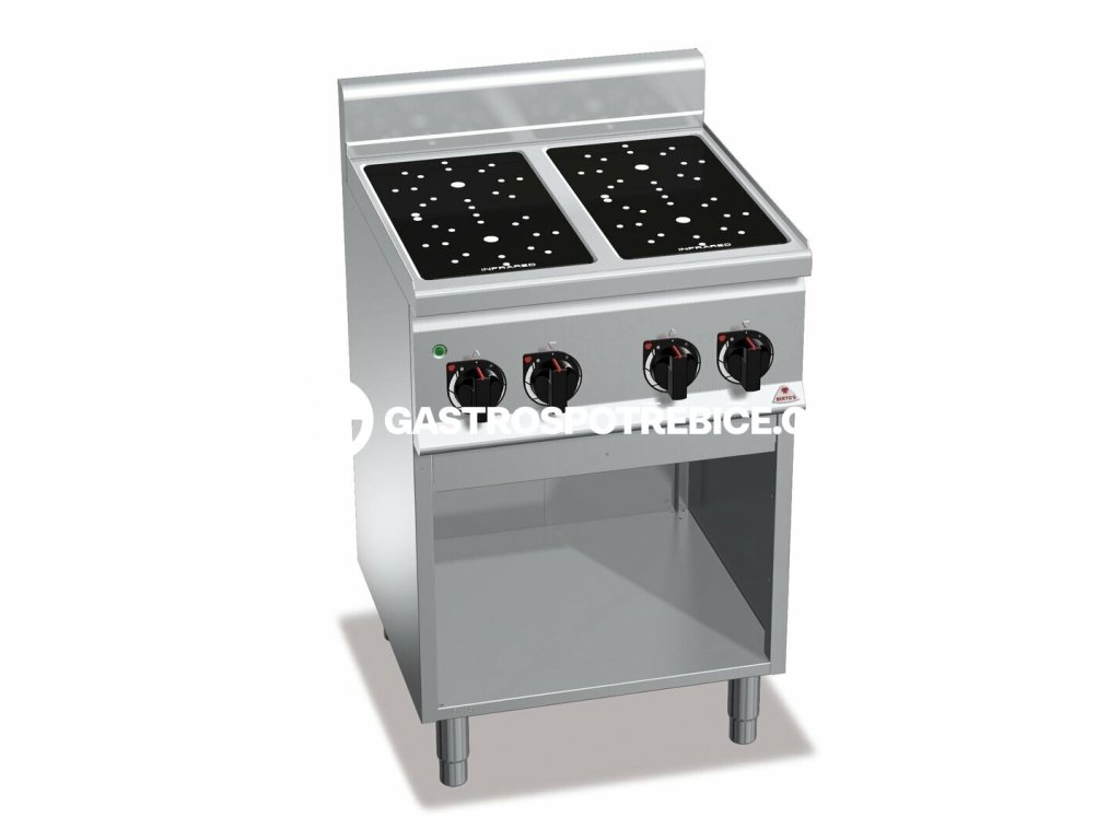 Pracovní plocha a opláštění z nerez oceli AISI 304. Sklokeramická varná deska s přesnou regulací výkonu (lze ovládat ve dvou kruhových zónách) s Ø plotny 200mm. Kompaktní provedení s otevřeným podstavcem. Technické listy ke stažení: zde Prospekty ke stažení : zde Provedení: sklokeramika Počet ploten: 4 Celkový příkon: 8,4 kWDoplňkové parametry