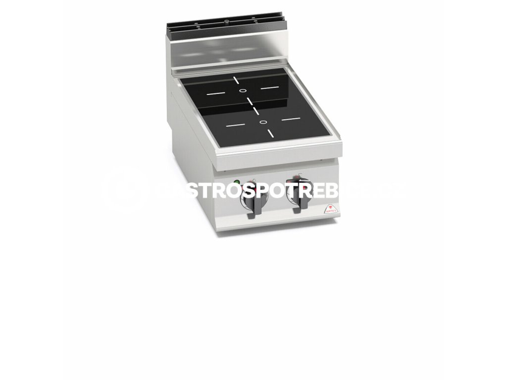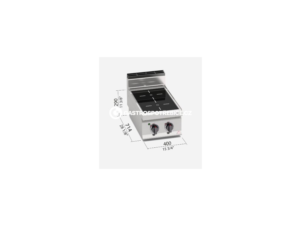 Keramická varná deska tloušťka 6 mm. Elektrická topná tělesa o Ø250 mm a výkonu 2,5kW dosahují při vaření v kruhových zónách. Plochy zón jsou označeny speciálním serigrafem, dle kterého je určena správná poloha hrnce. Světelná signalizace zbytkového tepla do 60°C při vypnutí každé zóny pro ochranu uživatele. Varná deska má zcela hladký povrch, který zaručuje snadné a rychlé čistění bez nutnosti použití agresivních prostředků. Tloušťka desky umožňuje velmi přesnou regulaci teploty a výkonu(zóna 3,5 kW). Během několika sekund dosáhne deska teploty až 500°C. Obsluha ocení indikaci přítomnosti zbytkového tepla až 60°C. Provedení: sklokeramika Počet ploten: 2 Celkový příkon: 5 kWDoplňkové parametry