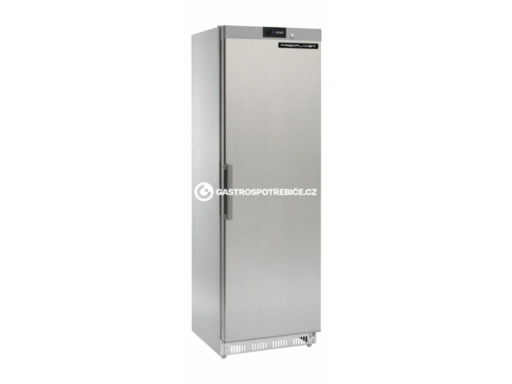 Mrazící skříně AKD/F s ekologickým chlazením, statické intenzivní chlazení integrované do pevných mrazících polic (6x pevná mrazící police v rozměru - 480x415 mm, rozteč polic 210 mm). Mrazící skříně jsou vhodné pro uchování různých druhů balených potravin. Snadné elektronické ovládání s displejem integrované ve dveřích, manuální odtávání, skříně jsou ve standardu vybaveny zámkem dveří a antikondenzačním vyhřívaným těsněním. Kvalitní izolace stěn (60mm), pevný hygienický vnitřní prostor v bílém ABS plastu (hygienické prolisované provedení). Mrazící skříně jsou dodávané s nerezovým opláštěním (modely s označením „SS“), případně v bílém laku. Vnější konstrukce z nerezeové oceli Vnitřní konstrukce z ABS Statické chlazení v regálech Digitální řídicí jednotka integrovaná ve dveřích Zárubeň pro vyhřívané antikondenzační dveře Ruční odmrazování Oboustranná dvířka (vyžaduje volitelnou sadu) Tloušťka izolace 60 mm Snadno odnímatelné magnetické těsnění Buňka se zaoblenými rohy Zámek dveří s klíčem Vybaveno 6 pevnými policemi 480x415 mm, středová vzdálenost 210 mmDoplňkové parametry