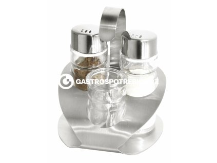 Elegantní nerezové stolní provedení menážky se slánkou a pepřenkou.