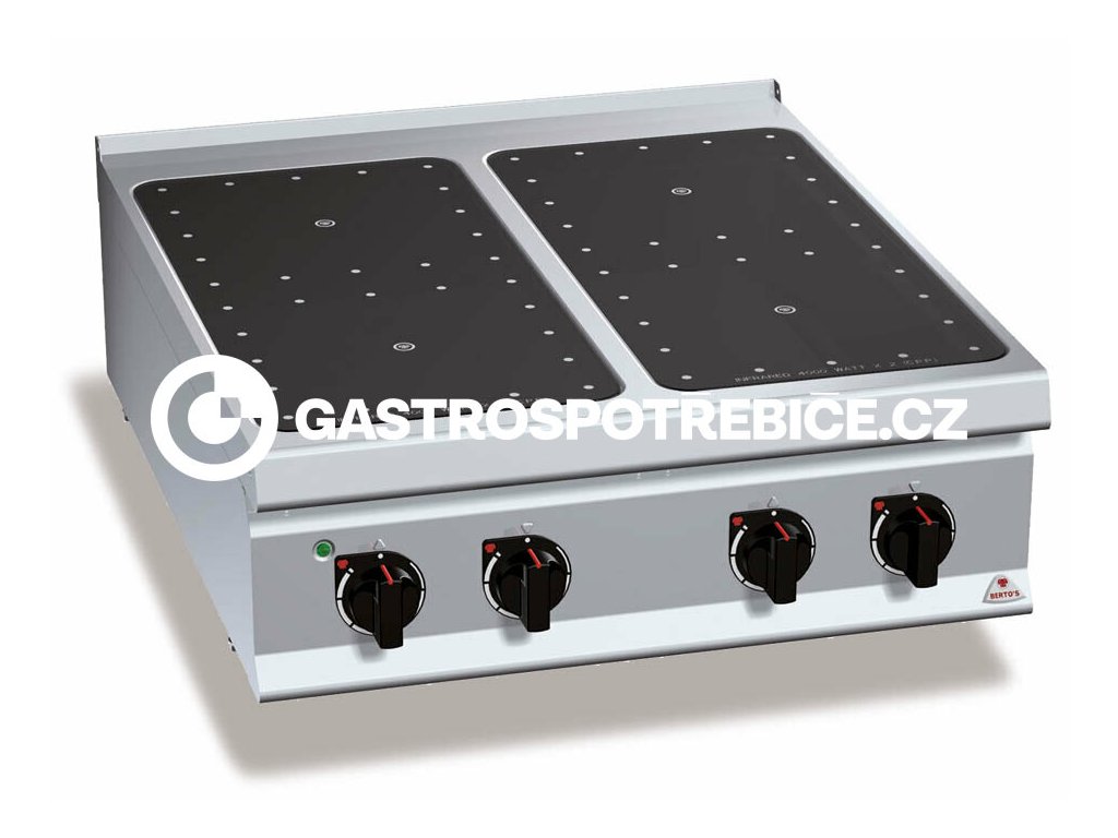 Keramická varná deska tloušťka 6 mm. Elektrická topná tělesa o Ø270 mm a výkonu 4kW dosahují při vaření v kruhových zónách vysokých teplot (do 500°C). Plochy zón jsou označeny speciálním serigrafem, dle kterého je určena správná poloha hrnce. Světelná signalizace zbytkového tepla do 60°C při vypnutí každé zóny pro ochranu uživatele.Doplňkové parametry