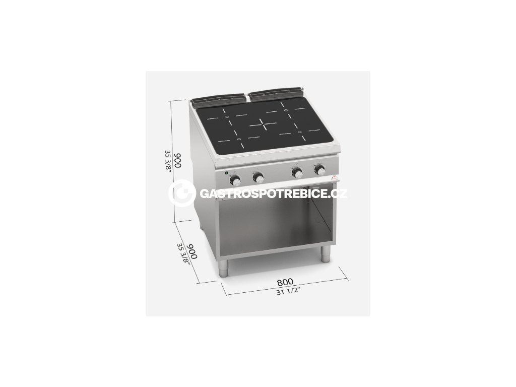 Keramická varná deska tloušťka 6 mm. Elektrická topná tělesa o Ø300 mm a výkonu 4kW dosahují při vaření v kruhových zónách vysokých teplot (do 500°C). Plochy zón jsou označeny speciálním serigrafem, dle kterého je určena správná poloha hrnce. Světelná signalizace zbytkového tepla do 60°C při vypnutí každé zóny pro ochranu uživatele. Kompaktní provedení s otevřeným podstavcem. Provedení: sklokeramika Počet ploten: 4 Celkový příkon: 16 kWDoplňkové parametry