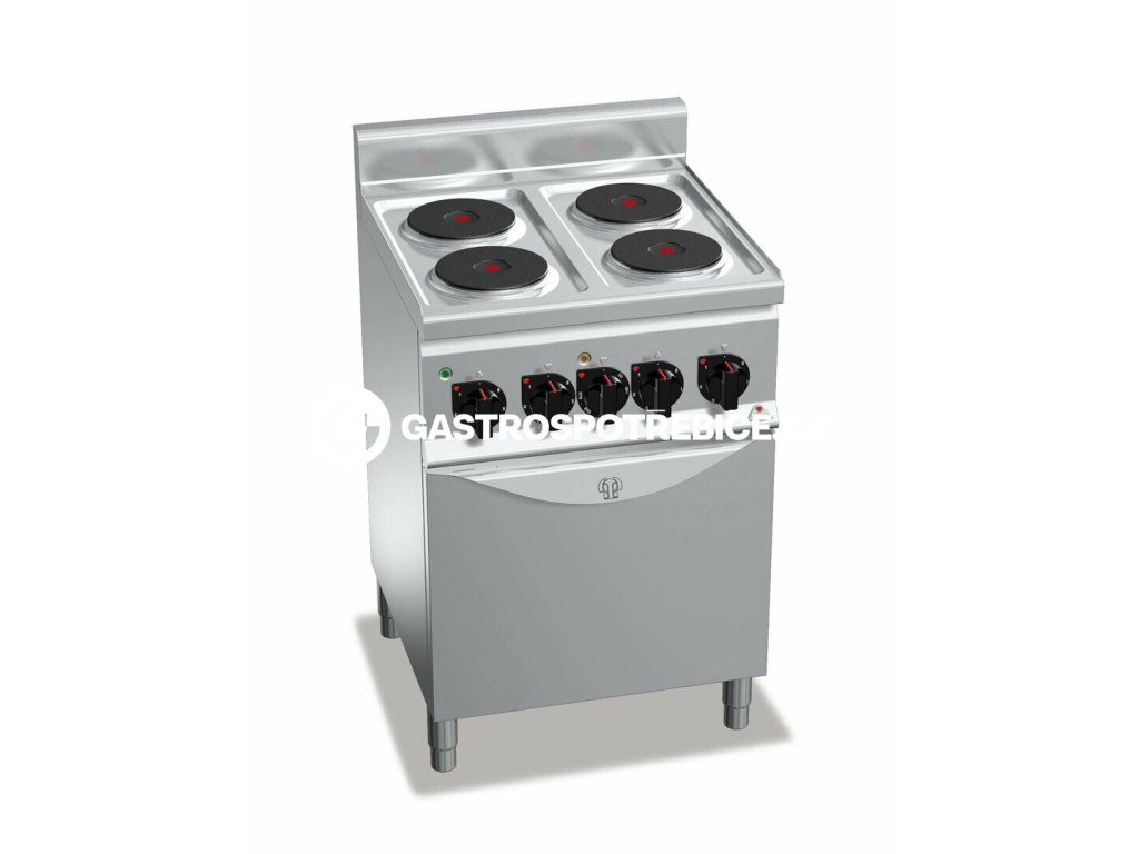 Elektrické sporáky jsou vybaveny kulatými litinovými plotnami Ø 180 mm a výkonem 2 kW. Teplota je regulována nezávisle nastavitelnými spínači. Elektrická konvekční trouba vhodná pro GN 1/1 s kvalitním těsněním dveří. Provedení: elektrika Počet ploten: 4 Trouba: 4x GN1/1 Celkový příkon: 11 kWDoplňkové parametry