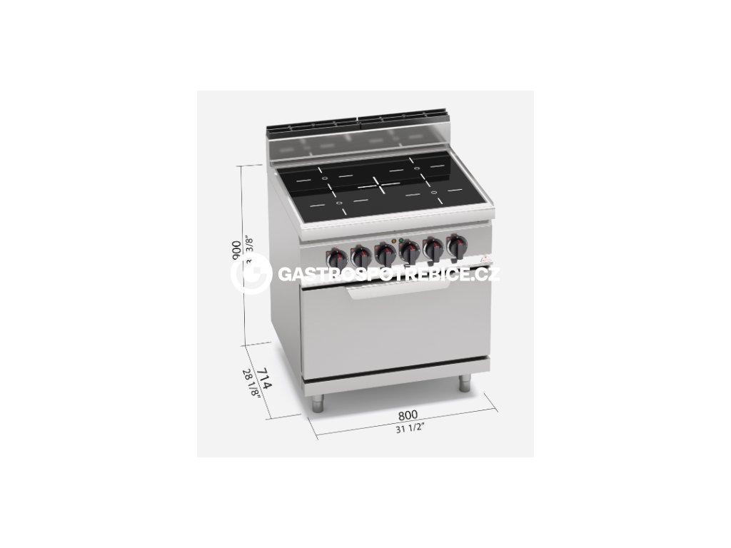 Keramická varná deska tloušťka 6 mm. Elektrické topnice s výkonem 3,2kW pro každou zónu 230x230mm. Plochy zón jsou označeny speciálním serigrafem, dle kterého je určena správná poloha hrnce. Světelná signalizace zbytkového tepla do 60°C při vypnutí každé zóny pro ochranu uživatele. Varná deska má zcela hladký povrch, který zaručuje snadné a rychlé čistění bez nutnosti použití agresivních prostředků. Tloušťka desky umožňuje velmi přesnou regulaci teploty a výkonu(zóna 3,2 kW). Během několika sekund dosáhne deska teploty až 500°C. Obsluha ocení indikaci přítomnosti zbytkového tepla až 60°C. Indukční desky se vyznačují energetickou úsporou jež je zajišťována rychlým dosažením maximálních teplot a eliminací rozptylu tepelné energie, která působí pouze na dno nádoby (úspora až 30%). Výkonná elektrická statická multifunkční trouba vhodná pro GN 2/1 se zesíleným litinovým dnem, vybavena kvalitním těsněním dveří. Elektrické sklokeramické sporáky s otevřeným podstavcem nebo elektrickou troubou (FE - statická pro GN 2/1 s ovládáním jednotlivých těles. Nadstandardní tloušťka varné desky 60/10, přesné nastavení výkonu umožňuje zcela bezpečnou práci. Výkon varných zón 3,2 kW (lze ovládat v zónách 230x230mm). Rychlé dosažení nejvyšší teploty (500°C), signalizace nahřátí a stavu zbytkového tepla až 60°C. Úspora energie oproti tradičním varným zařízením až 20%.Doplňkové parametry