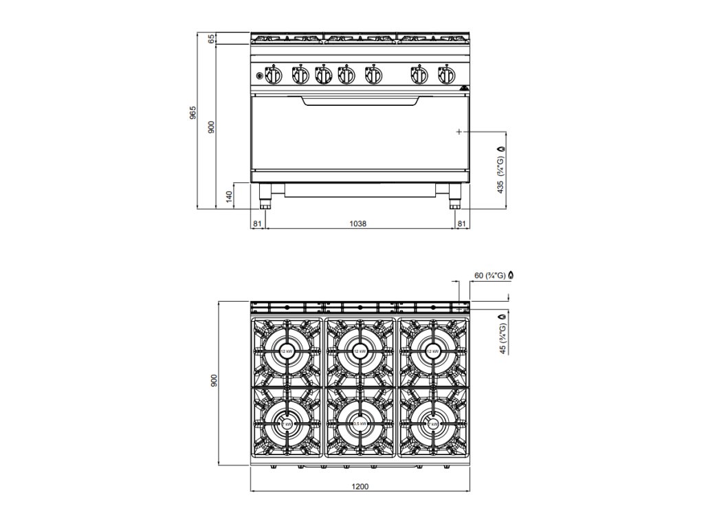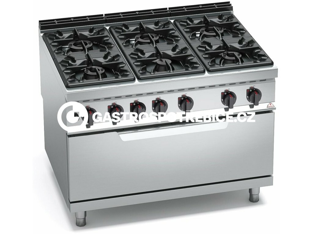 Příprava jídel přímo na plameni je u všech kuchařů nezbytná pro zdůraznění tradičních kulinářských dovedností. Tvar litinových roštůtvoří optimální pracovní plochu pro snadnou manipulaci s nádobím. Silné litinové hořáky s výkonem 3,5 kW, 7 kW a 12 kW se zaručují nadstandardní životnost. Vysoká energetická účinnost plynových hořáků umožňuje uspořit nejméně 30% plynu ročně v porovnání s tradičními hořáky. Odkapové vaničky pod hořáky mají zaoblené hrany, jsou kompletně odnímatelné. Vše je navrženo tak, aby byla snadná údržba a čištění. Bezpečnostní termočlánky i věčný plamínek Sporáky linie HIGH POWER vyrobeny z odolné nerez oceli AISI 304. Výkonné profesionální poniklované litinové hořáky s vnitřním a vnějším hořením, snadno demontovatelné a umístěné ve vyjímatelných prolisovaných nerezových odkapových vanách. Hořáky s bezpečnostním termočlánkem, zapalovány věčným plamínkem. Kompaktní provedení s otevřeným podstavcem. Trouby vyráběné z nerezové oceli Trouby jsou kompletně vyrobeny z nerezové oceli a jsou k dispozici v plynovém nebo elektrickém provedení, a to jak ve statické nebo konvekční verzi. Provedení: plyn Počet hořáků: 6 Trouba pro: 1045 x 530 mm Celkový příkon: 42,3 kWDoplňkové parametry
