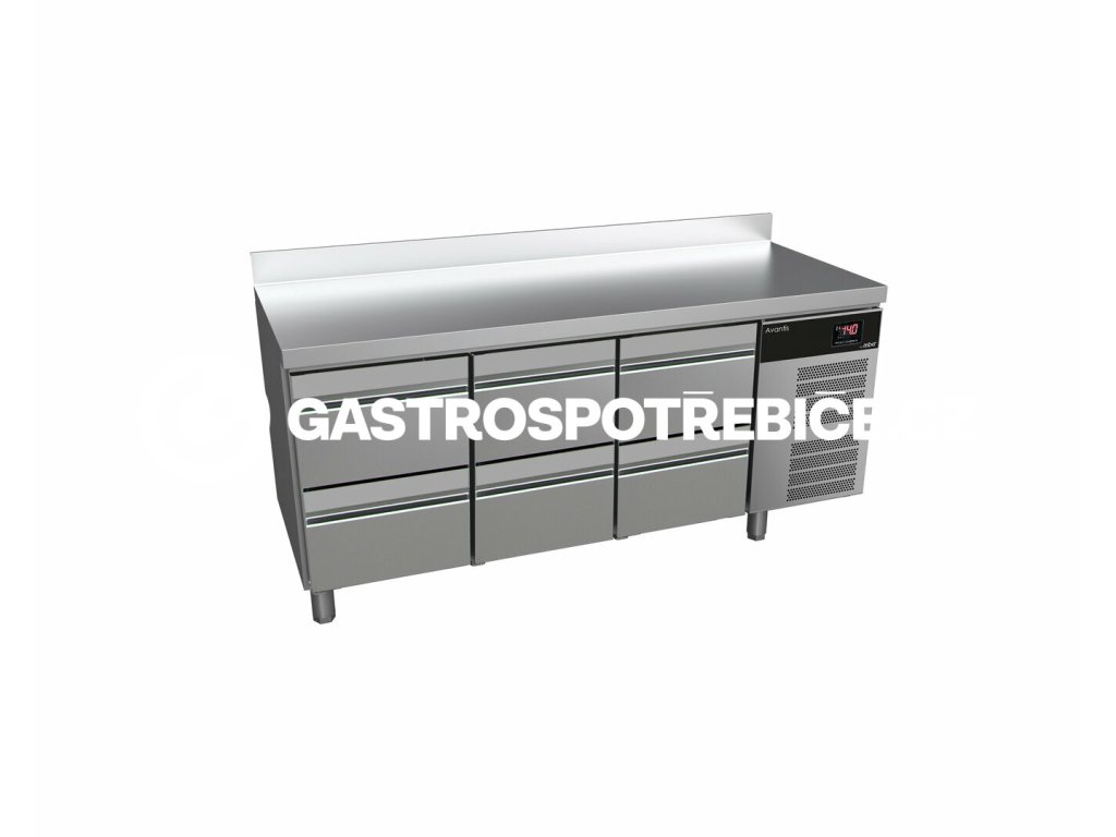 Stoly jsou vyrobené z vysoce kvalitní nerezové oceli v robustním designu s dokonalou povrchovou úpravou. Robustní pracovní nerezová deska se stříkanou 30 mm izolací, osazená standardně lemem vysokým 100 mm, který zabraňuje rozlití za chladící stůl. Zesílené stěny o tloušťce 60 mm pro menší výkyv teplot. Polyuretanová izolace s vysokou hustotou (40 kg/m³) bez CFC, vstřikovaná pod vysokým tlakem. Zásuvky jsou vyrobeny z nerezové oceli s perforovaným dnem a teleskopickými posuvnými vodítky, které umožňují úplné odtáhnutí, úspora pracovní plochy. Na vyžádání k dispozici jsou i další konfigurace zásuvek. Robustní plné dveře z nerezové oceli s ergonomickou dokonale integrovanou rukojetí zajišťující praktické otevírání dveří (zabrání sběru prachu a nečistot). Závěsy dveří s automatickým návratem pro dokonalé uzavření, které minimalizují teplotní ztráty. Dveře mají 120° pozici a zavírají se automaticky při úhlu menším než 90°. Dveřní závěsy jsou oboustranné, možná úprava na místě. Extra velké dotykové ovládání, přes obrazovku snadno nastavitelné požadované parametry, režim úspory energie a alarmový systém HACCP. Otočný přední panel s ovládáním, usnadní přístup k chladícímu agregátu. Designe odvětrávacích otvorů umožňuje zabudování stroje bez snížení výkonu. Na předním panelu je umístěn ”Ventilační mřížka” pro kvalitní proudění vzduchu k chladícímu systému a zajištění tak jeho lepší efektivity. Výparník s nuceným oběhem s antikorozním krytem. Systém Intelligent Air Circulation zajišťuje dokonalou konzistenci teploty a proudění vzduchu uvnitř komory skříně. Automatické odtávání namražené vody horkým plynem proudícím z kompresoru, namísto topných prvků, tím se dosahuje ještě menší spotřeby energie a snižuje se doba odmrazování na polovinu. Nastavitelné nohy z nerezové oceli. Výšku lze nastavit jednotlivě (125 mm - 200 mm), Pohodlné čištění. Kolečka s nožní brzdou jsou za příplatek jako volitelné příslušenství. Odnímatelné vodicí lišty umožňují pohodlné nastavení pozice drátěných roštů přesně jak potřebujete a usnadňují čištění, vše bez použití dalších nástrojů. Drátěné rošty jsou potažené epoxidem, to zlepšuje jejich ochranu a umožňuje ukládání různých typů balení s maximálním zatížením do 40 kg. 13 pozic umístění roštu pro zvýšení zatížení s roztečí 36 mm. Vyjímatelné magnetické těsnění pull-out/push-in (snadné vytažení/zasunutí) udržuje maximální hygienu a izolační vlastnosti dveří. Vnitřní hrany okrajů komor jsou zaoblené. Snadnější čištění a snížení výskytu nečistot. Vhodné pro umístění gastronádob GN 1/1; do polohovatelných zásuvů. Ve standardu dodávány 1 rošt pro GN 1/1 na každé plné dveře. Chladící plyn: R600a uhlovodík (HC) Pracovní teplota 0 až +8 °C v klimatických podmínkách třídy V. Napájecí napětí: 230 V/1N/50HzDoplňkové parametry