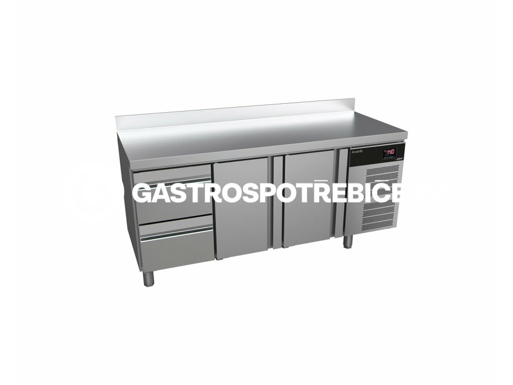 Stoly jsou vyrobené z vysoce kvalitní nerezové oceli v robustním designu s dokonalou povrchovou úpravou. Robustní pracovní nerezová deska se stříkanou 30 mm izolací, osazená standardně lemem vysokým 100 mm, který zabraňuje rozlití za chladící stůl. Zesílené stěny o tloušťce 60 mm pro menší výkyv teplot. Polyuretanová izolace s vysokou hustotou (40 kg/m³) bez CFC, vstřikovaná pod vysokým tlakem. Zásuvky jsou vyrobeny z nerezové oceli s perforovaným dnem a teleskopickými posuvnými vodítky, které umožňují úplné odtáhnutí, úspora pracovní plochy. Na vyžádání k dispozici jsou i další konfigurace zásuvek. Robustní plné dveře z nerezové oceli s ergonomickou dokonale integrovanou rukojetí zajišťující praktické otevírání dveří (zabrání sběru prachu a nečistot). Závěsy dveří s automatickým návratem pro dokonalé uzavření, které minimalizují teplotní ztráty. Dveře mají 120° pozici a zavírají se automaticky při úhlu menším než 90°. Dveřní závěsy jsou oboustranné, možná úprava na místě. Extra velké dotykové ovládání, přes obrazovku snadno nastavitelné požadované parametry, režim úspory energie a alarmový systém HACCP. Otočný přední panel s ovládáním, usnadní přístup k chladícímu agregátu. Designe odvětrávacích otvorů umožňuje zabudování stroje bez snížení výkonu. Na předním panelu je umístěn ”Ventilační mřížka” pro kvalitní proudění vzduchu k chladícímu systému a zajištění tak jeho lepší efektivity. Výparník s nuceným oběhem s antikorozním krytem. Systém Intelligent Air Circulation zajišťuje dokonalou konzistenci teploty a proudění vzduchu uvnitř komory skříně. Automatické odtávání namražené vody horkým plynem proudícím z kompresoru, namísto topných prvků, tím se dosahuje ještě menší spotřeby energie a snižuje se doba odmrazování na polovinu. Nastavitelné nohy z nerezové oceli. Výšku lze nastavit jednotlivě (125 mm - 200 mm), Pohodlné čištění. Kolečka s nožní brzdou jsou za příplatek jako volitelné příslušenství. Odnímatelné vodicí lišty umožňují pohodlné nastavení pozice drátěných roštů přesně jak potřebujete a usnadňují čištění, vše bez použití dalších nástrojů. Drátěné rošty jsou potažené epoxidem, to zlepšuje jejich ochranu a umožňuje ukládání různých typů balení s maximálním zatížením do 40 kg. 13 pozic umístění roštu pro zvýšení zatížení s roztečí 36 mm. Vyjímatelné magnetické těsnění pull-out/push-in (snadné vytažení/zasunutí) udržuje maximální hygienu a izolační vlastnosti dveří. Vnitřní hrany okrajů komor jsou zaoblené. Snadnější čištění a snížení výskytu nečistot. Vhodné pro umístění gastronádob GN 1/1; do polohovatelných zásuvů. Ve standardu dodávány 1 rošt pro GN 1/1 na každé plné dveře. Chladící plyn: R600a uhlovodík (HC) Pracovní teplota 0 až +8 °C v klimatických podmínkách třídy V. Napájecí napětí: 230 V/1N/50HzDoplňkové parametry